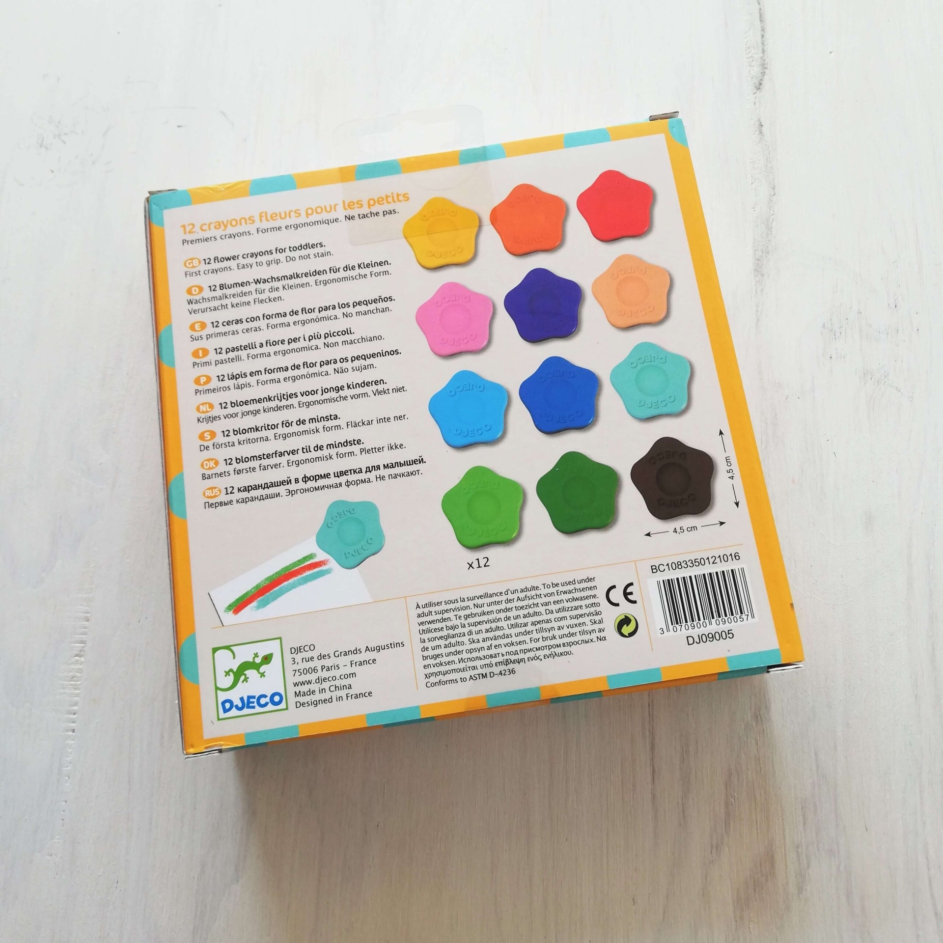 12 LÁPIS DE CERA EM FORMATO DE FLOR, DJECO