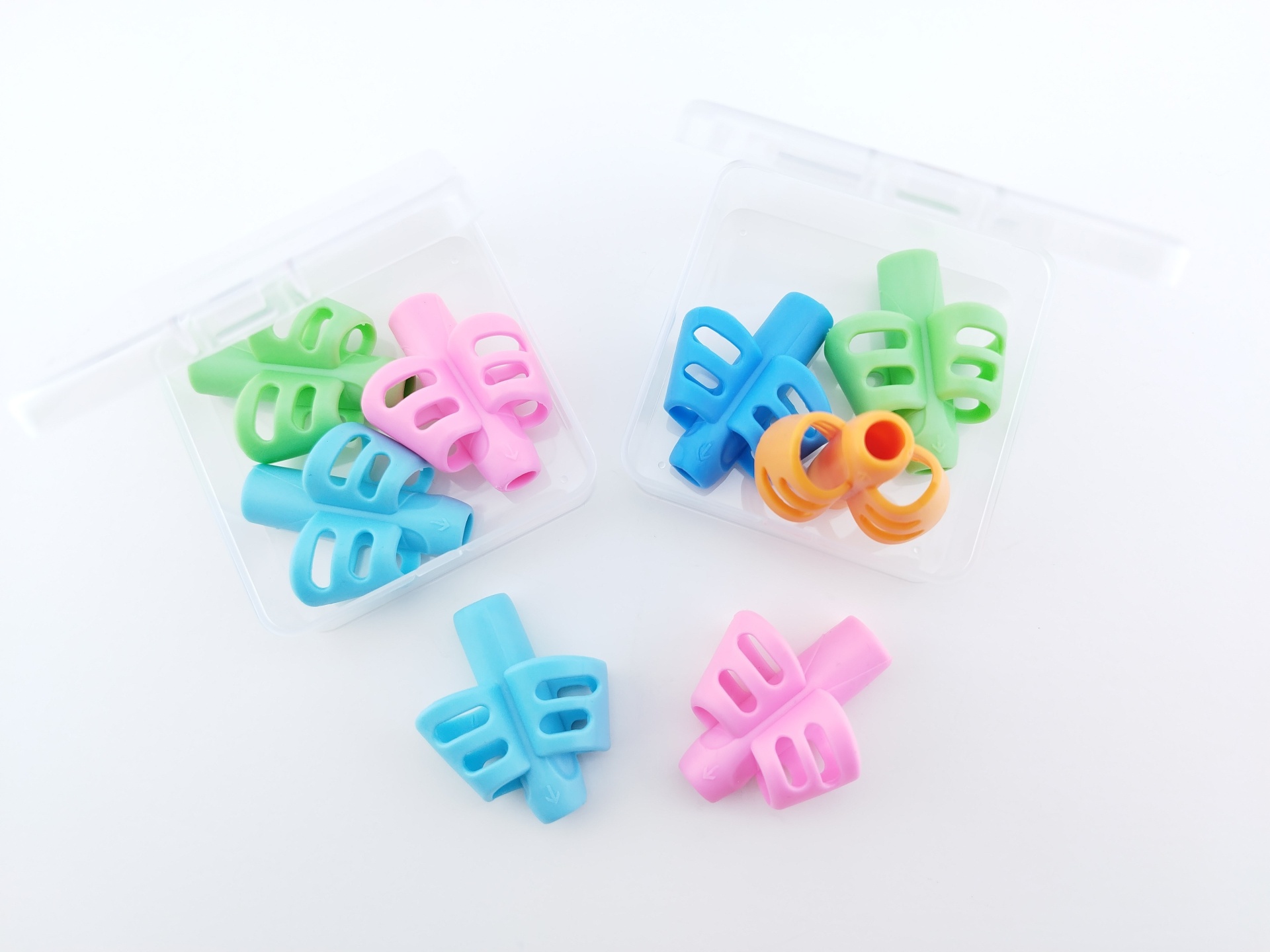 Escrever pode ser um desafio para as crianças que estão a iniciar a sua jornada escolar. Este conjunto de auxiliares de escrita em borracha ajuda a posicionar corretamente os dedos, proporcionando mais conforto e precisão nos movimentos. Com um design ergonómico e cores divertidas, é a solução perfeita para tornar o momento de escrever mais fácil, natural e motivador.