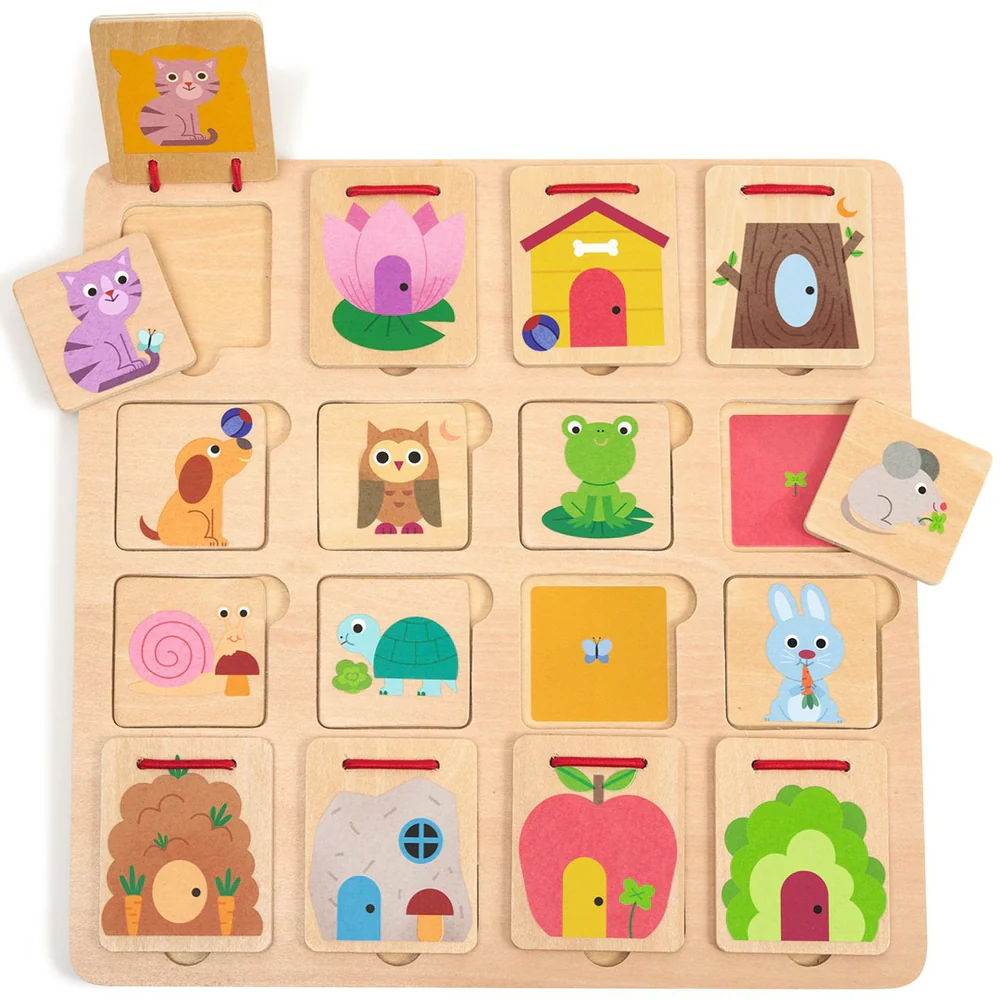 ✅ Conteúdo: quadro com alçapões e placas/peças de madeira para esconder e descobrir.