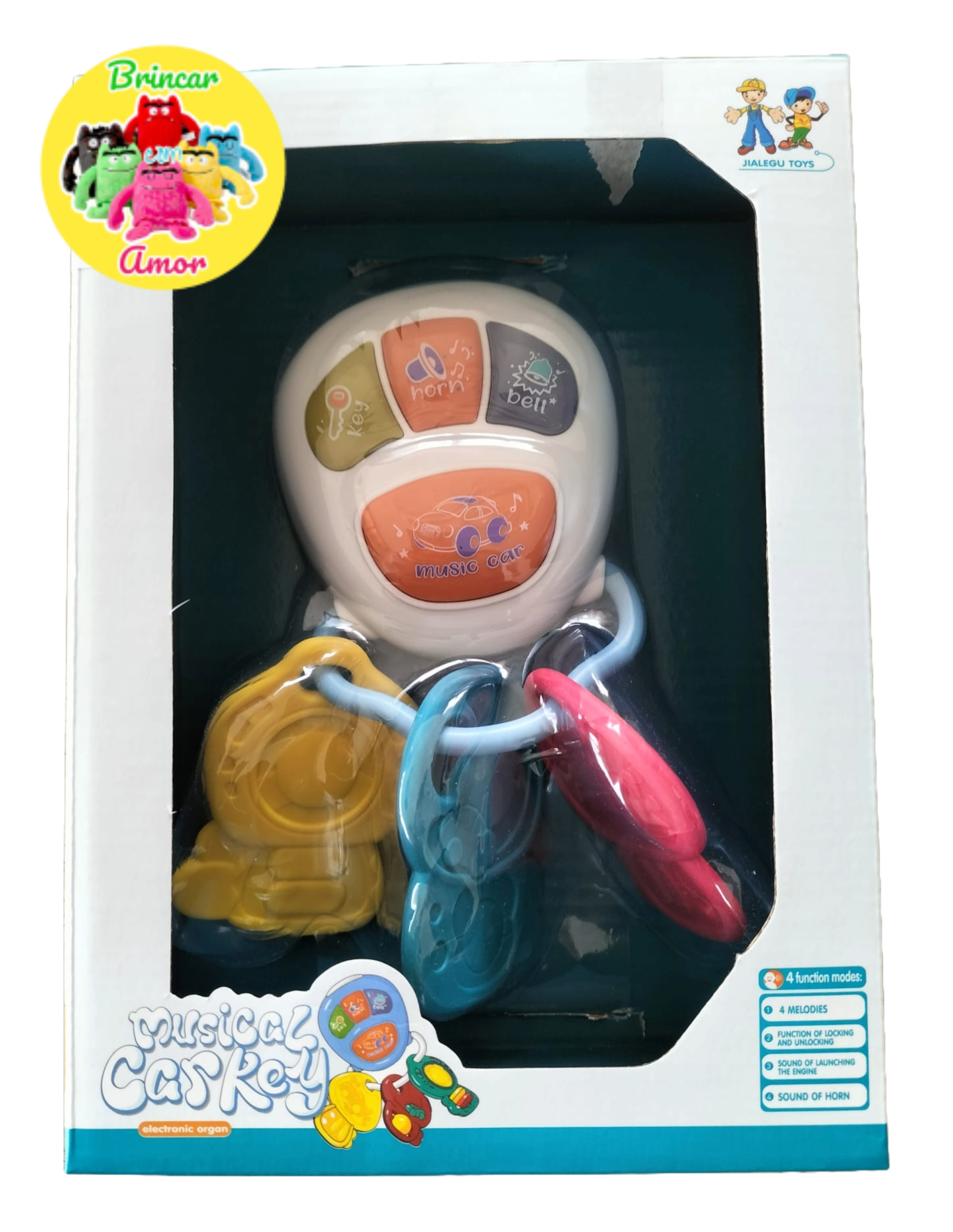 Benefícios Educativos: 👂 Estimulação Auditiva: Sons de buzina, sino e desbloqueio ajudam a desenvolver a sensibilidade musical. 🤲 Motricidade Fina: Botões adaptados para mãos pequenas promovem a coordenação e a força nos dedos. 🦷 Alívio na Dentição: Mordedores seguros e resistentes proporcionam conforto às gengivas. 🧠 Exploração Cognitiva: Cores e texturas incentivam o reconhecimento visual e tátil. 🎯 Entretenimento Educativo: Estimula a curiosidade, atenção e concentração de forma lúdica.
