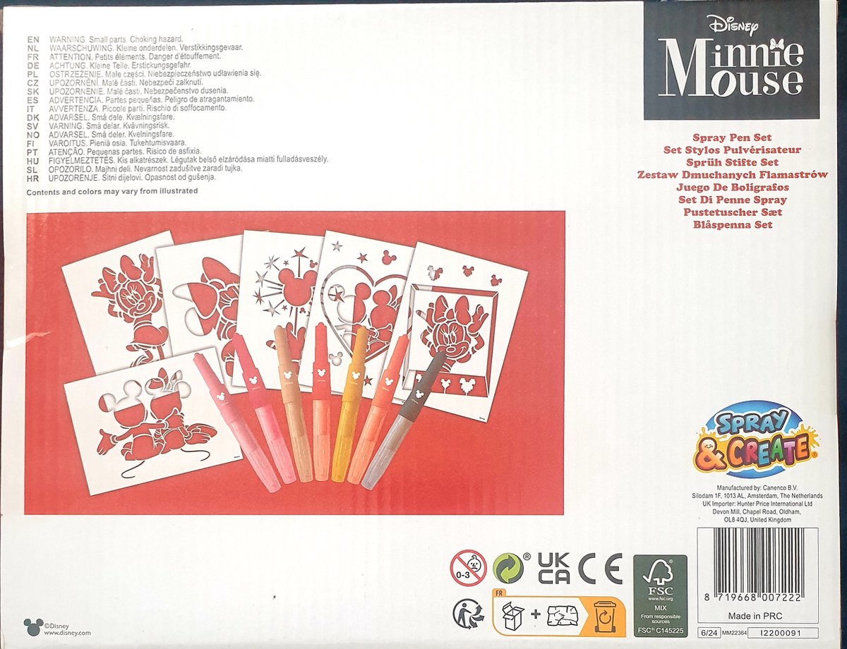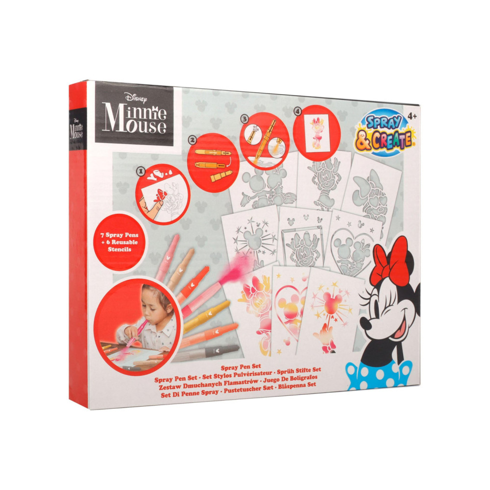 Dá asas à imaginação com o Conjunto Canetas de Sopro Minnie, um conjunto mágico que transforma desenhos em verdadeiras obras de arte! Com 7 canetas spray e 6 estêncis reutilizáveis, as crianças podem criar cenários divertidos e coloridos com os seus personagens favoritos.