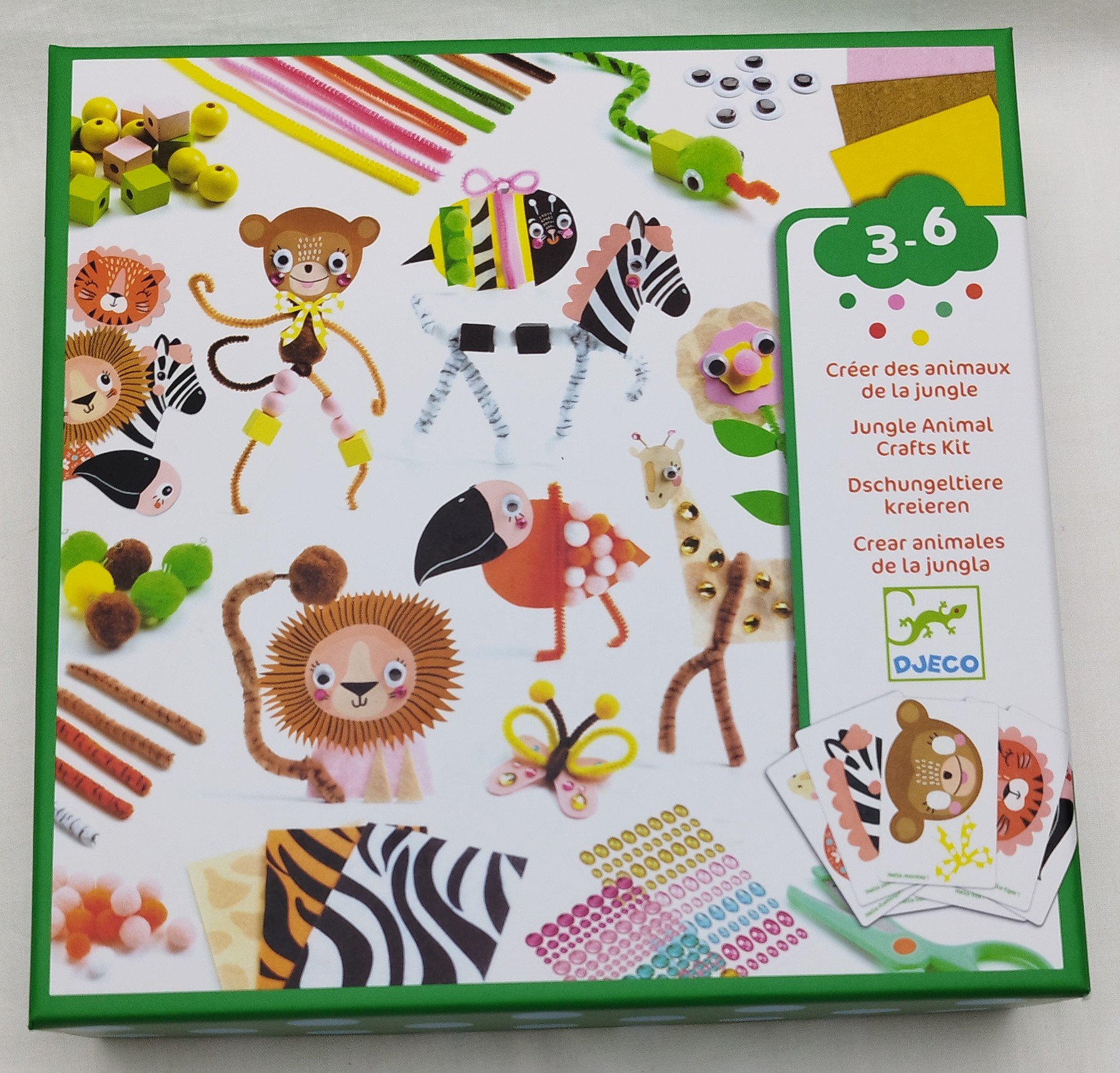Queres estimular a imaginação e a motricidade dos teus filhos? O Conjunto de Construção Manual de Animais da Selva da Djeco é uma atividade artística envolvente que permite às crianças criar animais únicos e coloridos. Com materiais variados como feltro, espuma, pompons e autocolantes, este kit promove criatividade, destreza manual e exploração sensorial, transformando cada projeto numa verdadeira obra de arte.