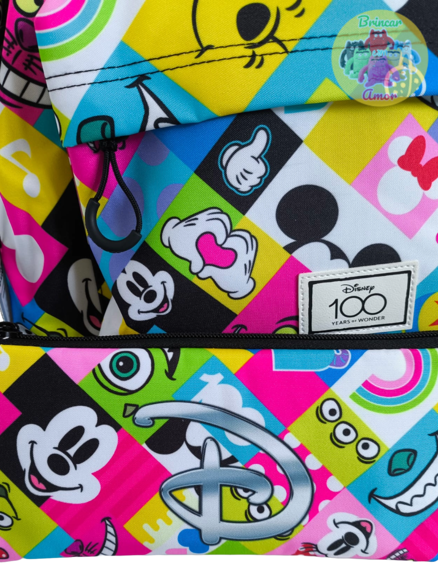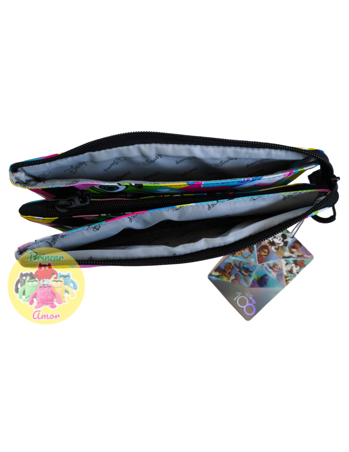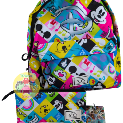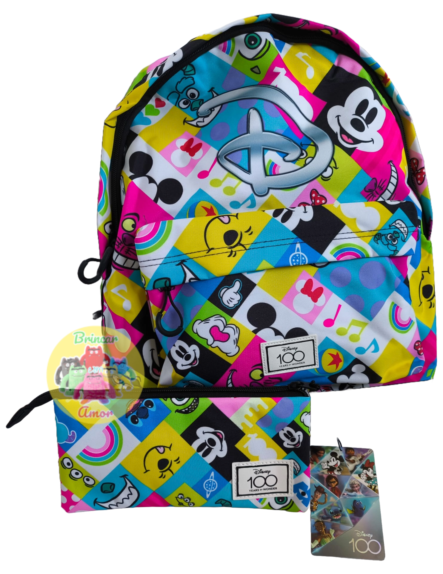 CONJUNTO ESCOLAR MOCHILA E ESTOJO TRIPLO DISNEY 100 ANOS MULTICOLORIDO