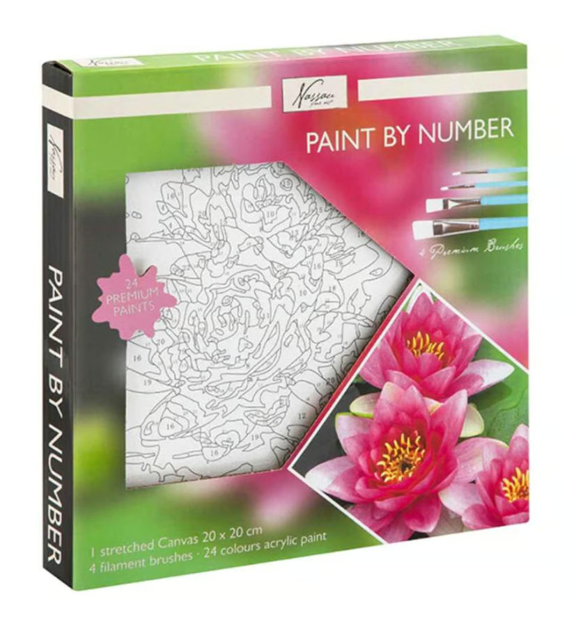 CONJUNTO PINTURA POR NÚMEROS CANVAS 20X20CM - NENÚFAR, NASSAU