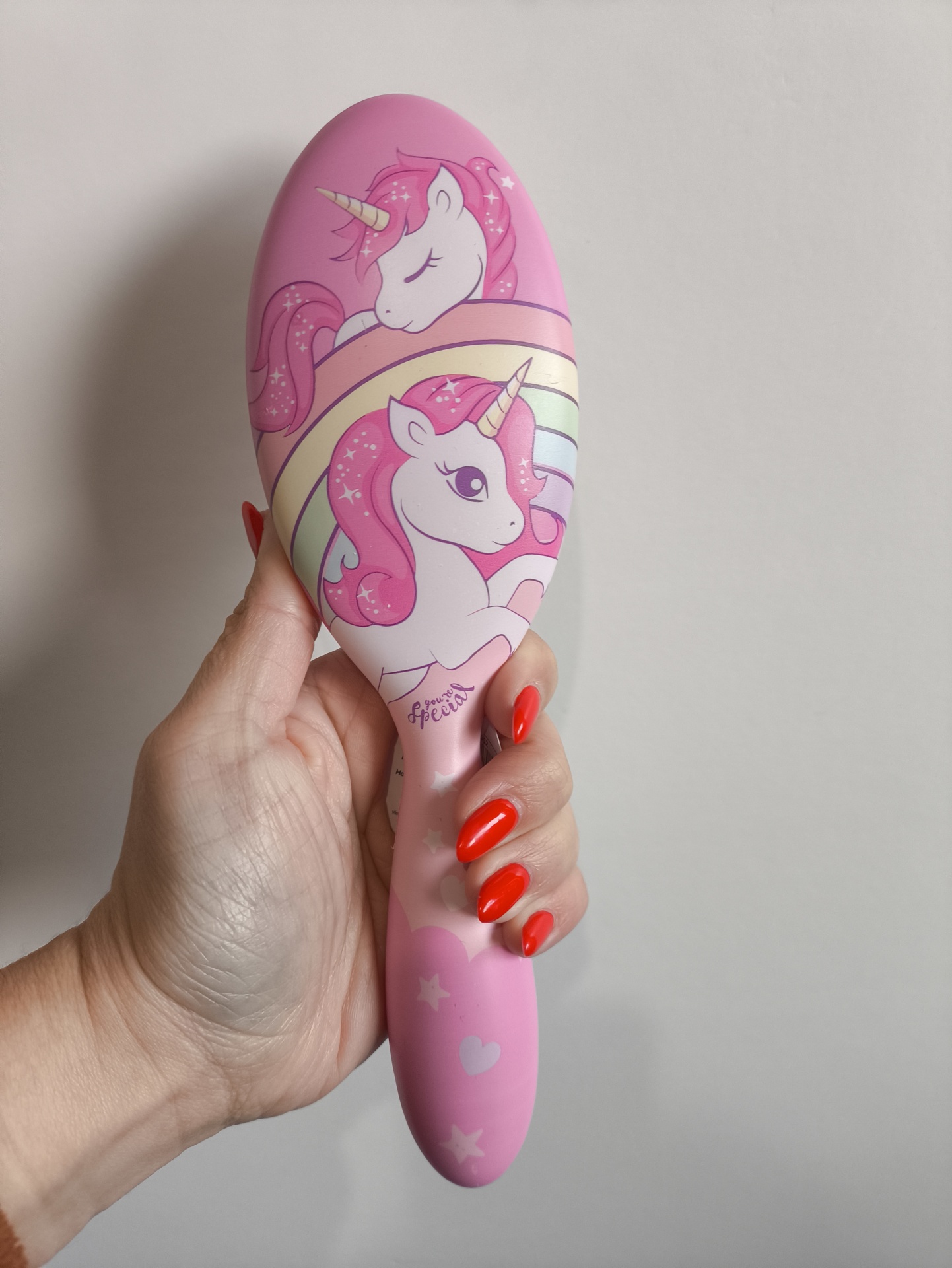 - Cerdas Suaves e Eficazes: Desembaraça o cabelo sem puxões, garantindo uma escovagem confortável. - Desenvolvimento Motor e Coordenação: Incentiva as crianças a cuidarem do próprio cabelo, desenvolvendo a coordenação olho-mão. - Autonomia e Autoestima: Promove a independência ao transformar o cuidado capilar numa tarefa agradável e mágica. - Design Unicórnio Rosa: Com o adorável unicórnio "You Are Special", esta escova cativa a imaginação e encanta os fãs de unicórnios.