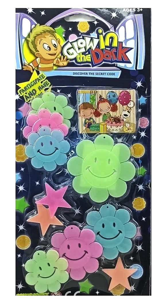 ✔️ Inclui 10 modelos fosforescentes de flores e estrelas.