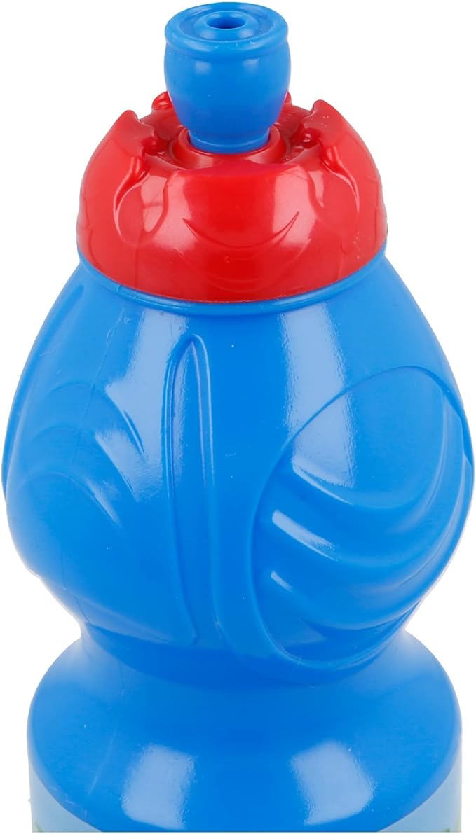 Garrafa desportiva azul com tampa vermelha e ilustração do Super Mario