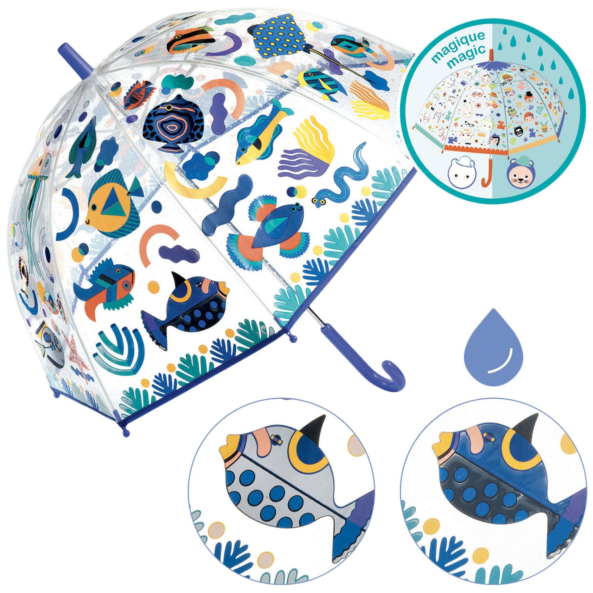 Guarda-Chuva Peixes - Muda de Cor Djeco | Mágico e Seguro para Crianças