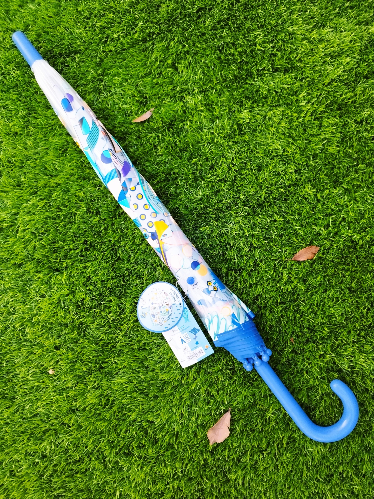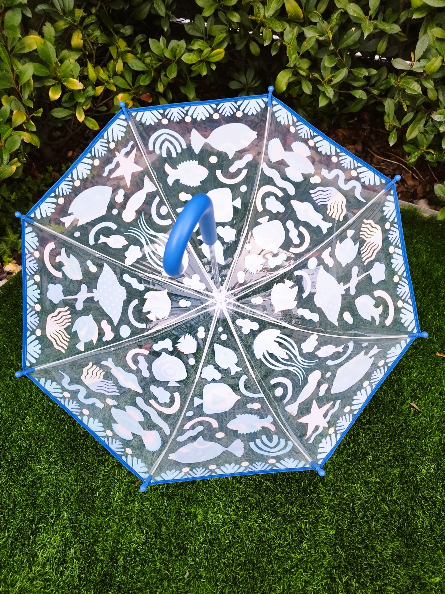 ✔️ Design Inovador: Um guarda-chuva divertido e elegante, com peixes ilustrados que magicamente mudam de cor em contacto com a água e quando o guarda-chuva está seco.