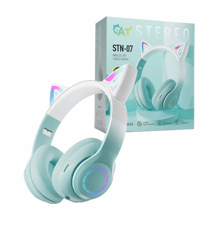 HEADPHONES BLUETOOTH E LUZ RGB PARA CRIANÇA - GATO