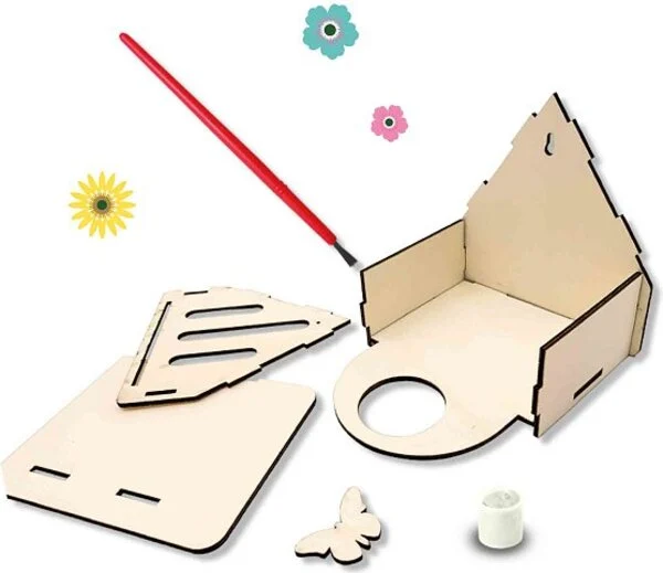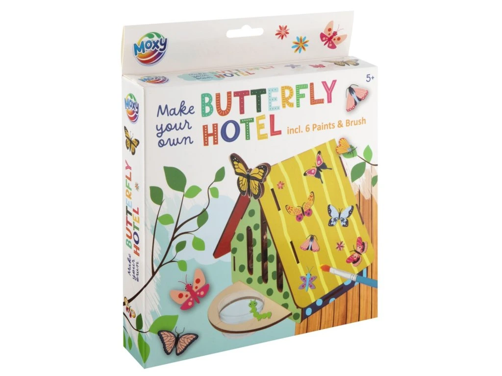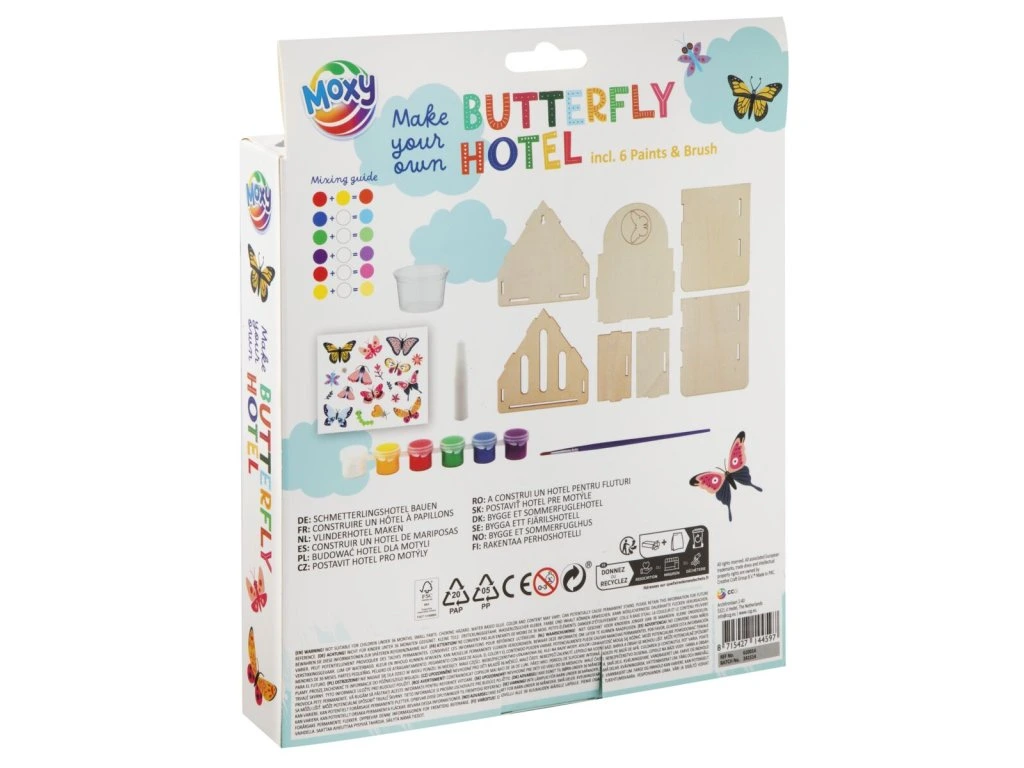HOTEL DE BORBOLETAS EM MADEIRA PARA MONTAR E COLORIR, MOXY
