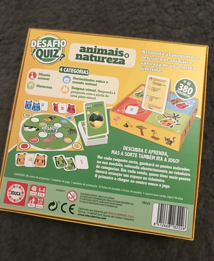 Descobre curiosidades incríveis sobre os animais e a natureza com este divertido jogo de perguntas e respostas! Ideal para momentos em família ou com amigos, o Desafio Quiz Animais e Natureza estimula o conhecimento, a memória e a atenção das crianças enquanto se divertem. Com mais de 380 perguntas divididas em 4 categorias, a diversão está garantida em cada jogada!