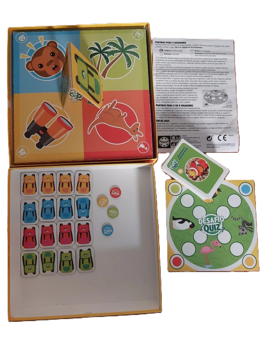 ✔️ Inclui tabuleiro, bandeja de categorias, 16 fichas-mochila e 4 fichas de jogador.