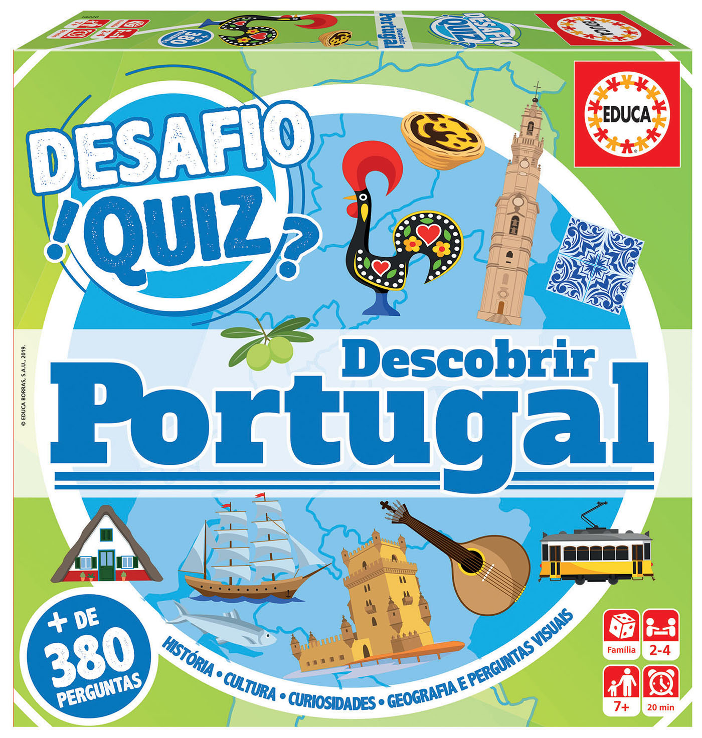 Explora Portugal de norte a sul com este divertido jogo de perguntas e respostas! O Desafio Quiz Descobrir Portugal permite testar os teus conhecimentos sobre a cultura, gastronomia, paisagens e curiosidades do nosso país. Com mais de 380 perguntas divididas em 4 categorias, este jogo garante momentos educativos e animados para toda a família. Quem será o verdadeiro especialista em Portugal aí de casa?