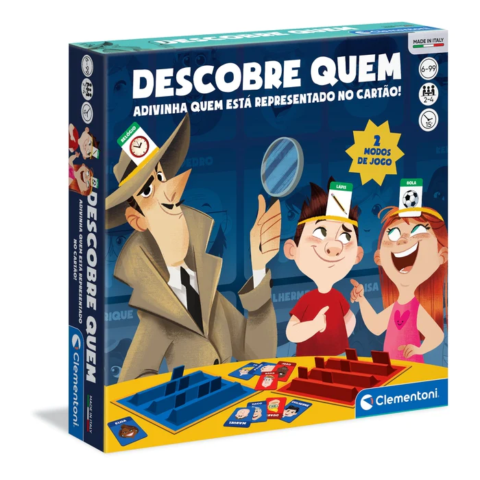O Jogo Descobre Quem da Clementoni é perfeito para pequenos investigadores e famílias que adoram desafios! Um jogo clássico de adivinhação onde, através de perguntas estratégicas, as crianças procuram descobrir qual é a personagem ou objeto. Diversão garantida enquanto estimulam o raciocínio e a comunicação!