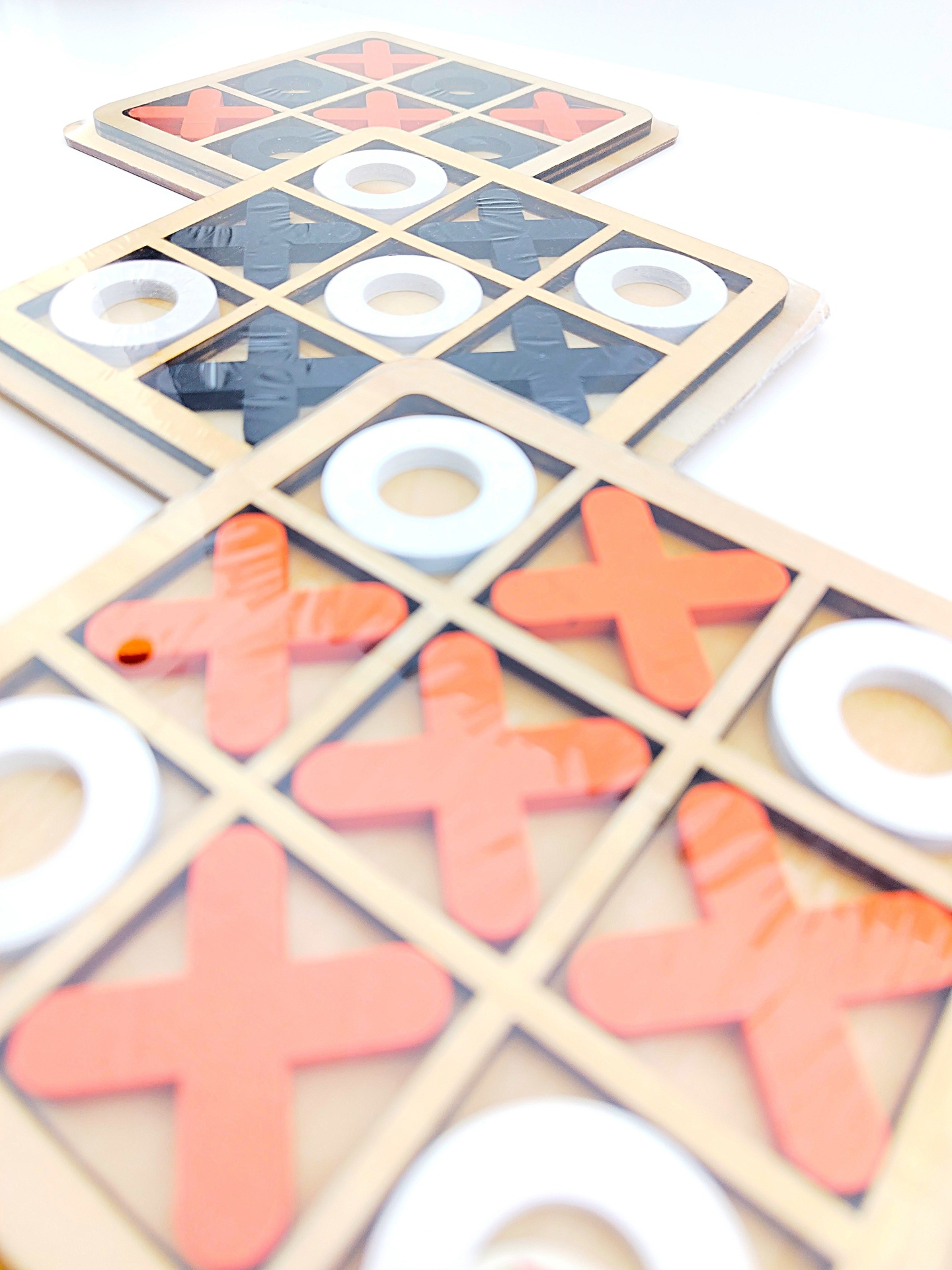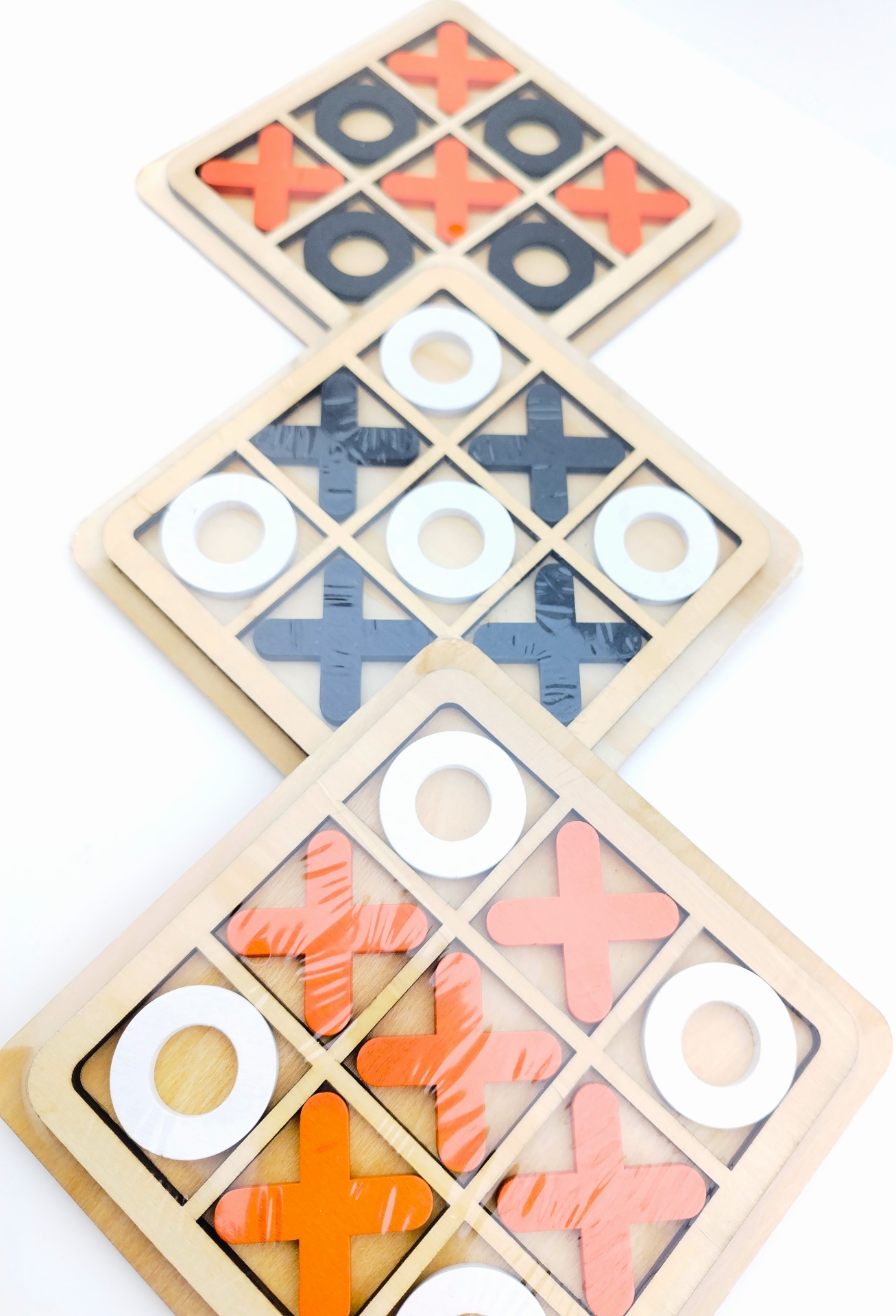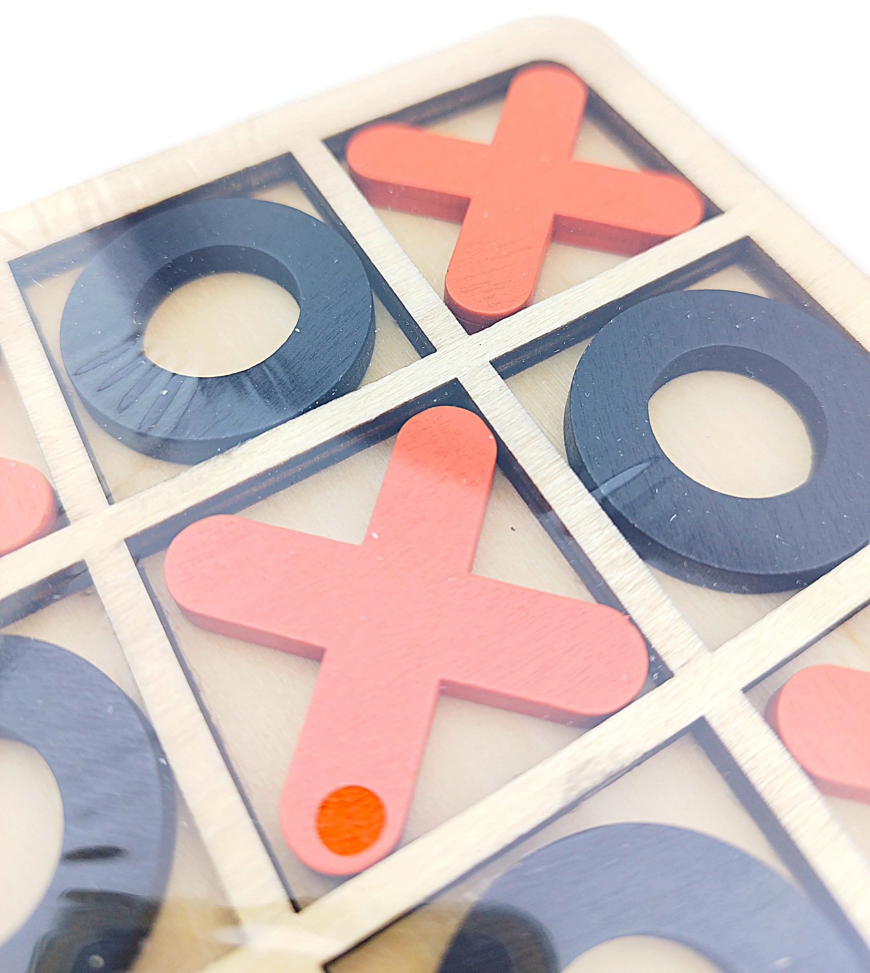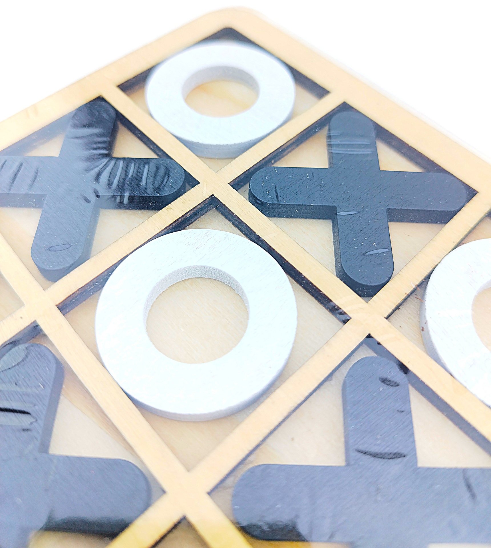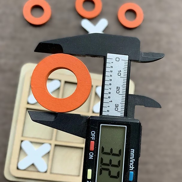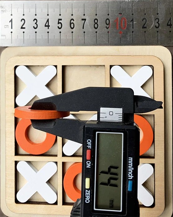 ✅ Dimensões das Peças: 3.3x3.3x0.4 cm (X e O) em cores contrastantes.