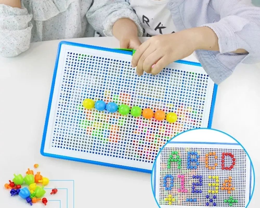 ✋ Motricidade fina: Encaixar e posicionar os pinos melhora a precisão dos movimentos e a coordenação mão–olho.