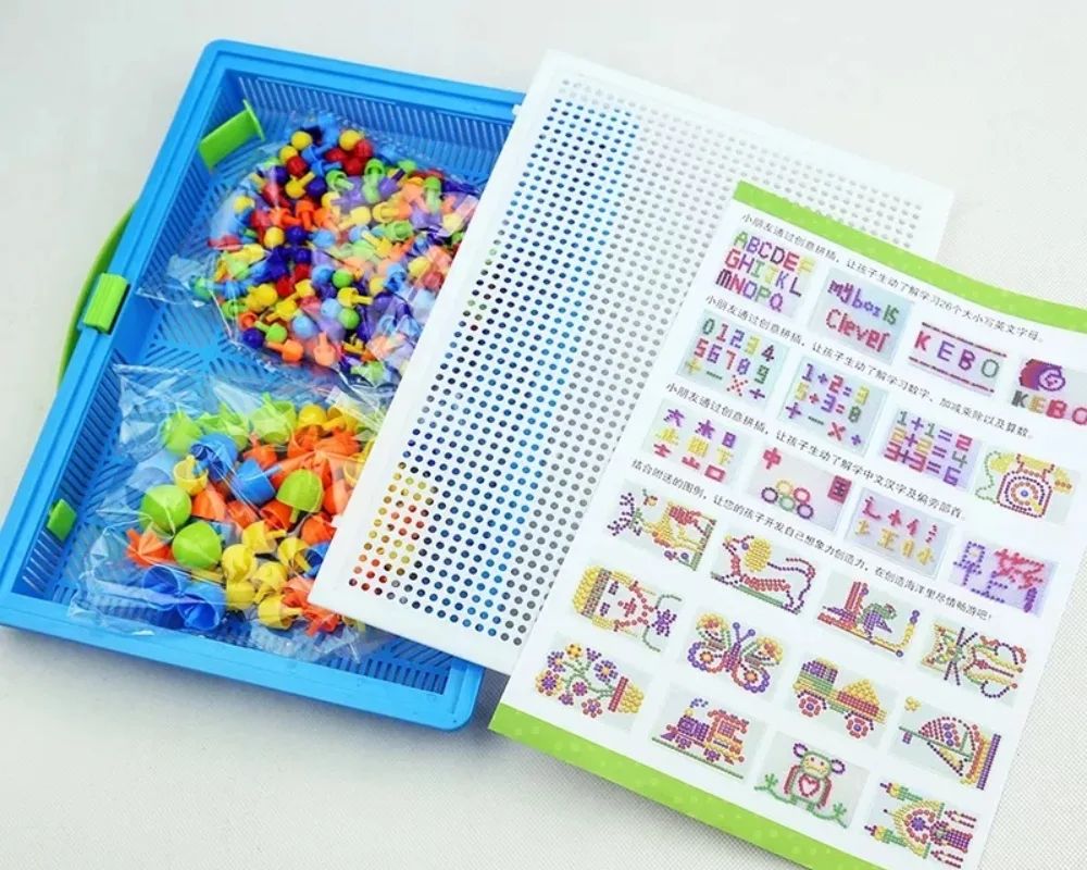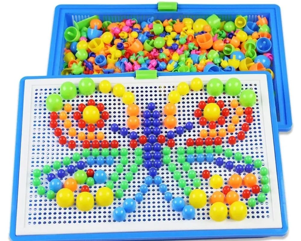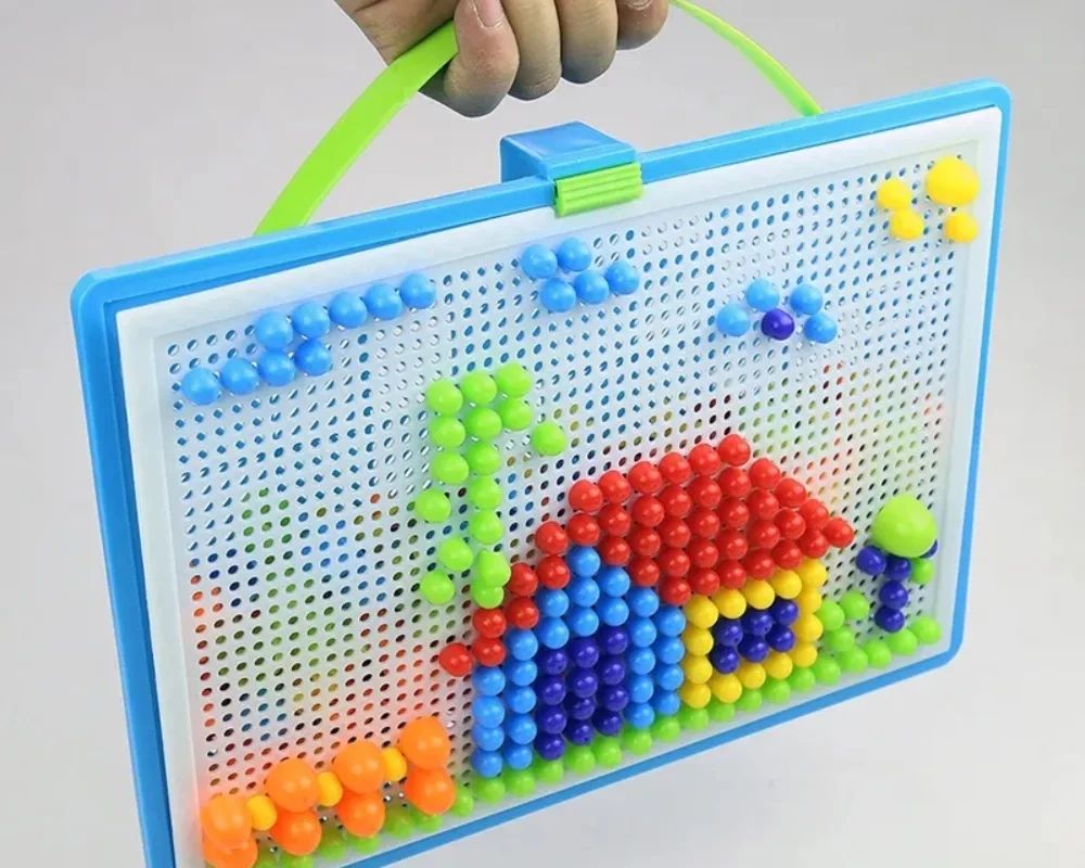 ✅ Inclui tabuleiro e pinos coloridos de diferentes tamanhos.