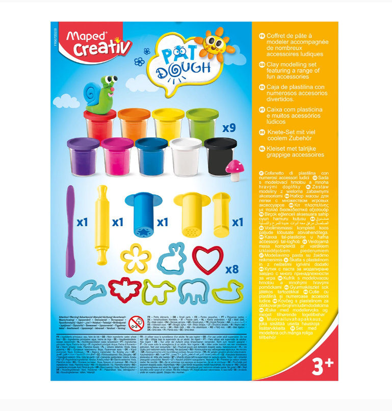 O Kit de Plasticina Maped é o conjunto perfeito para estimular a imaginação e a criatividade dos mais pequenos! Com 9 potes de plasticina de cores vibrantes e 12 acessórios divertidos, as crianças podem moldar, amassar e criar figuras sem fim, explorando texturas e formas enquanto desenvolvem competências essenciais através da brincadeira.