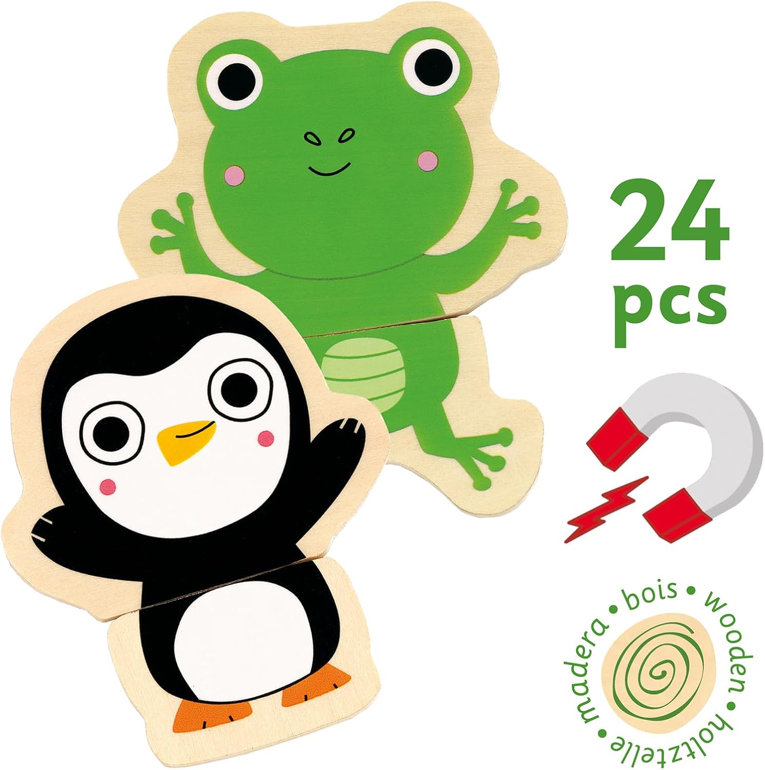 ✅ Conteúdo: 24 ímanes de madeira ilustrados.