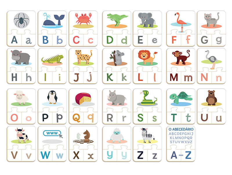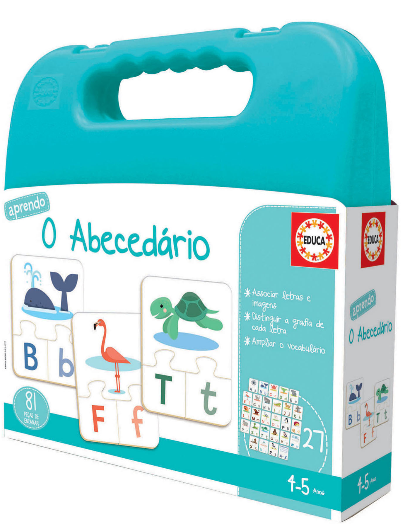 Este jogo educativo é a forma ideal para os mais pequenos iniciarem a aprendizagem das letras. Com 81 peças que formam 27 puzzles, as crianças associam letras minúsculas e maiúsculas a imagens, reconhecendo a grafia e ampliando o vocabulário de forma divertida e envolvente.
