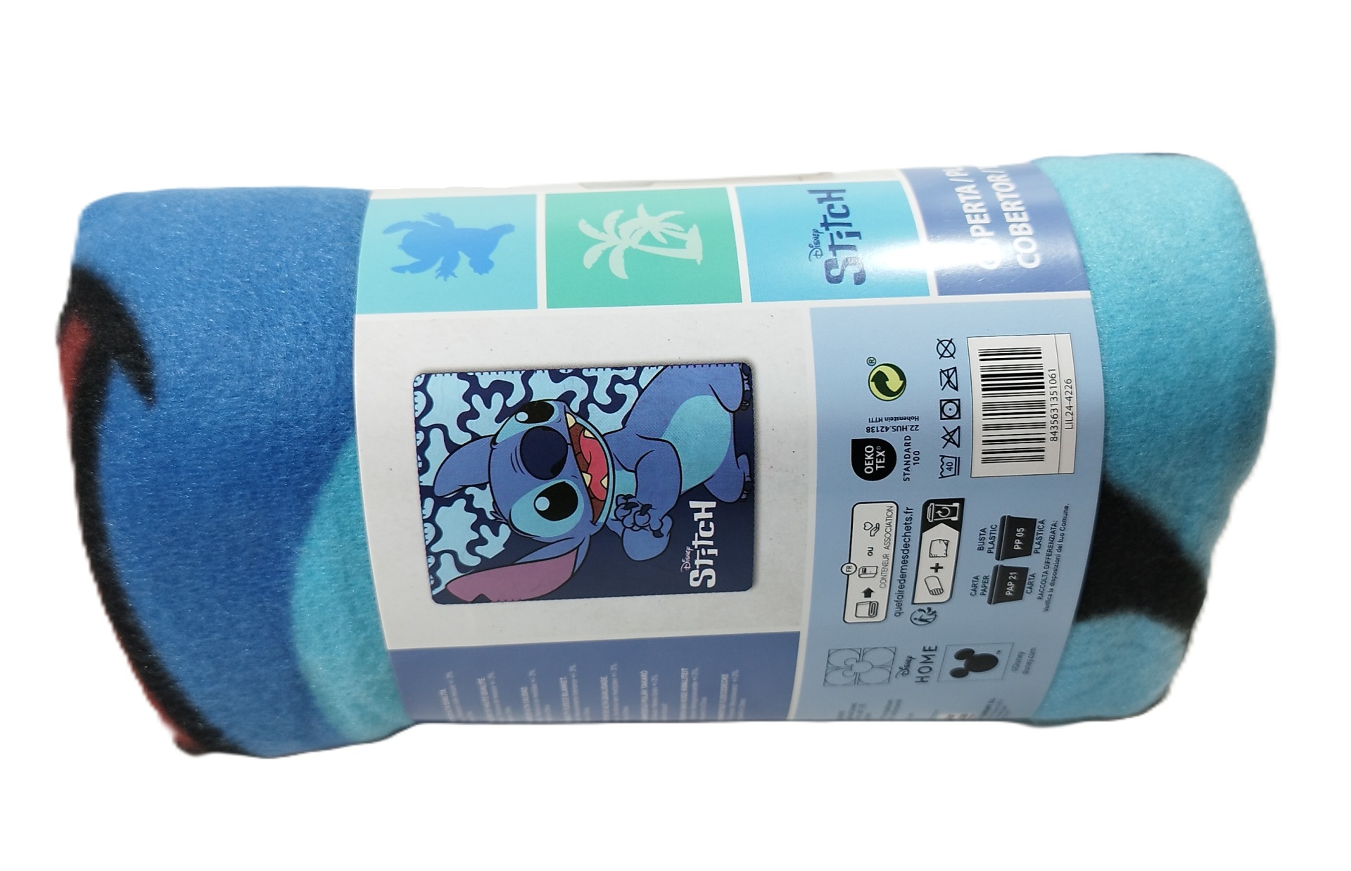 MANTA POLAR INFANTIL 100X140CM - STITCH AZUL