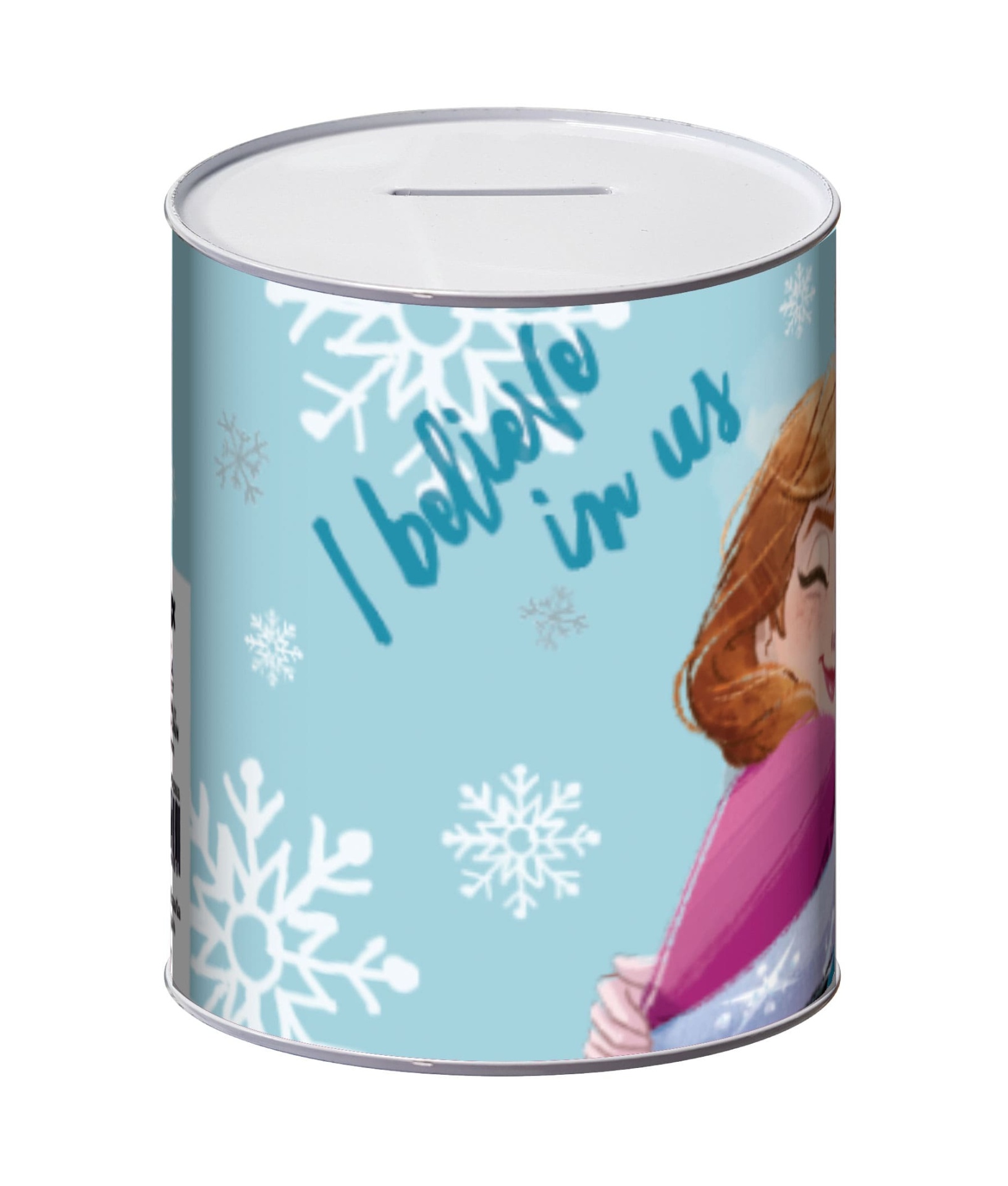 O Mealheiro Metálico Frozen com Abertura Única é uma forma encantadora e educativa de incentivar o hábito de poupar desde cedo. Com um design inspirado no universo mágico de Frozen e estrutura resistente, transforma o ato de guardar dinheiro numa experiência prática, divertida e cheia de fantasia.