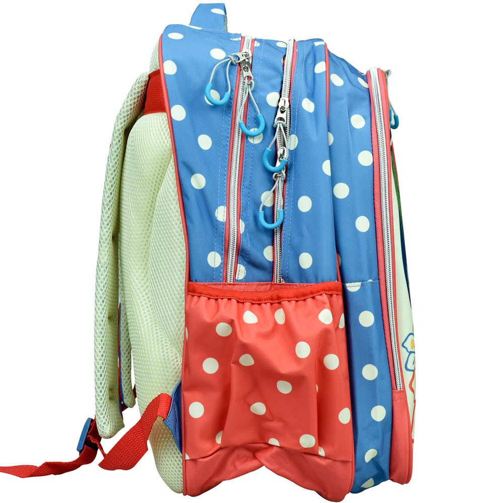 -Dois compartimentos principais com forro, espaçosos com fecho de correr, ideais para cadernos e livros. -Um bolso frontal com fecho de correr para fácil acesso a pequenos itens. -Alças de ombro ajustáveis, acolchoadas e respiráveis para maior conforto durante o uso, com bandas refletoras. -Pega de mão acolchoada. -Material de alta resistência. -Parte traseira acolchoada e respirável. -Bolsa lateral com fecho de correr. -Bolsa lateral para garrafa. -Fechos resistentes e fáceis de manusear, mesmo para mãos pequenas.