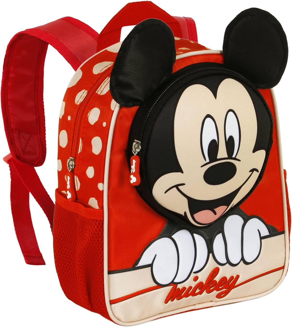 Características: - Design: A frente da mochila possui uma bolsa com fecho, no formato da cabeça da Mickey Mouse, criando um efeito visual impressionante e divertido. - Compartimento Principal Espaçoso: Compartimento com fecho, ideal para armazenar lanches, brinquedos e outros itens essenciais do dia a dia. - Bolsos Laterais em Malha: Perfeitos para guardar garrafas de água ou pequenos objetos de fácil acesso. - Alças Ajustáveis e Acolchoadas: Proporcionam conforto e ajuste perfeito para os ombros das crianças. - Material Durável e Resistente: Feita de material de alta qualidade para garantir durabilidade e resistência ao uso diário.