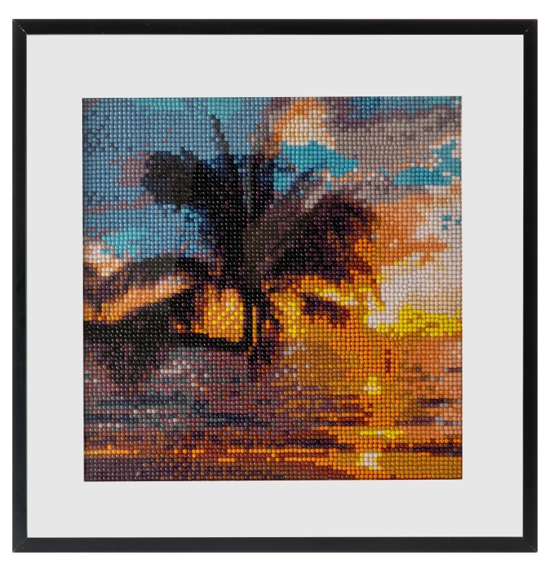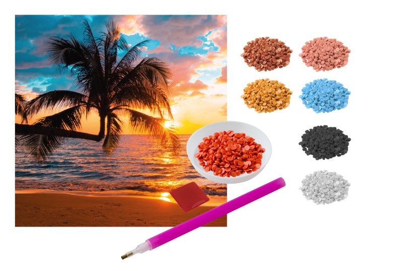 PINTURA DE DIAMANTES 30X30CM - PÔR DO SOL NA PRAIA, CRAFT ID