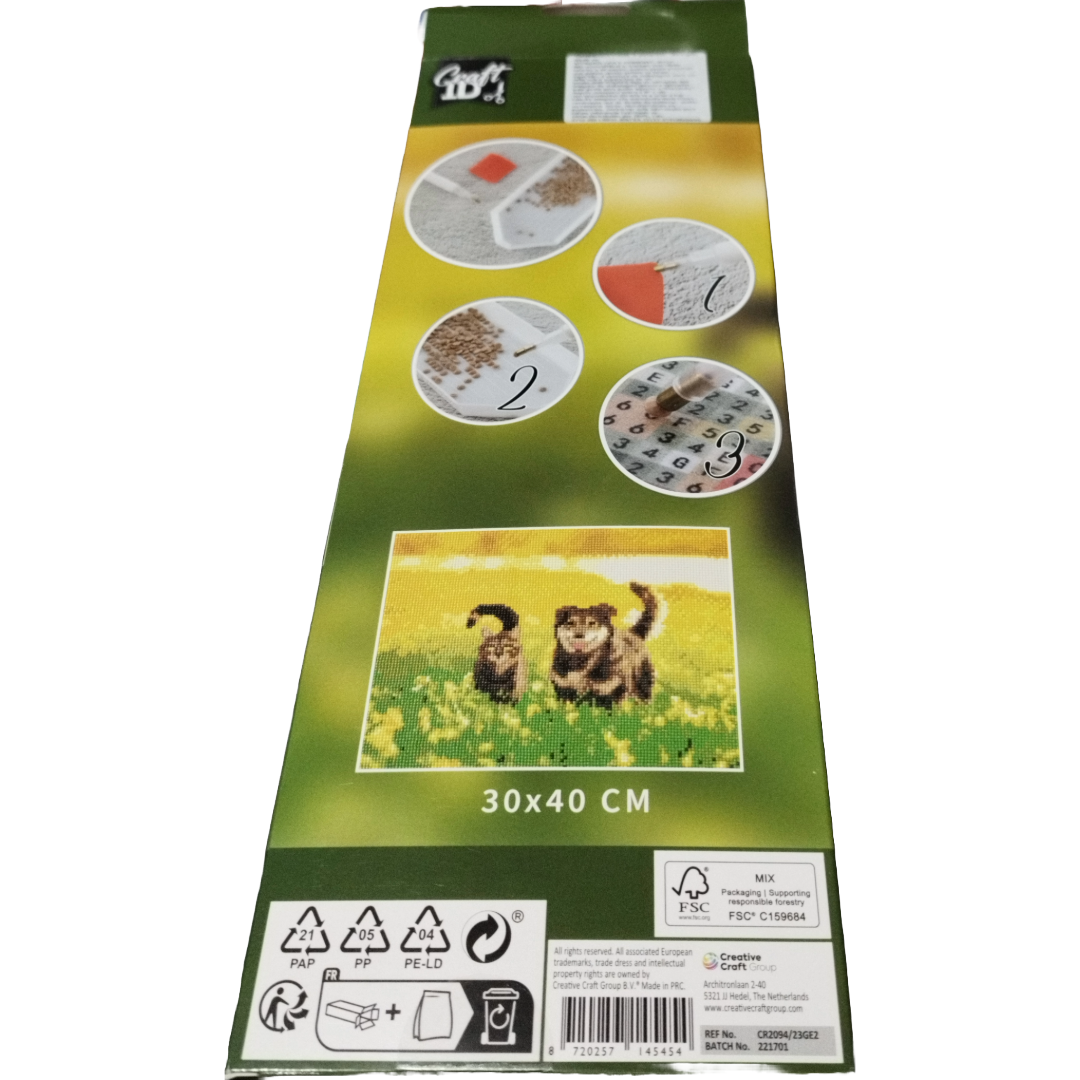 PINTURA DE DIAMANTES 30X40CM - CÃO E GATO, CRAFT ID