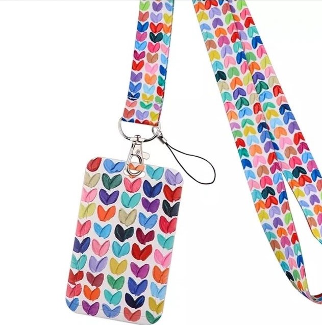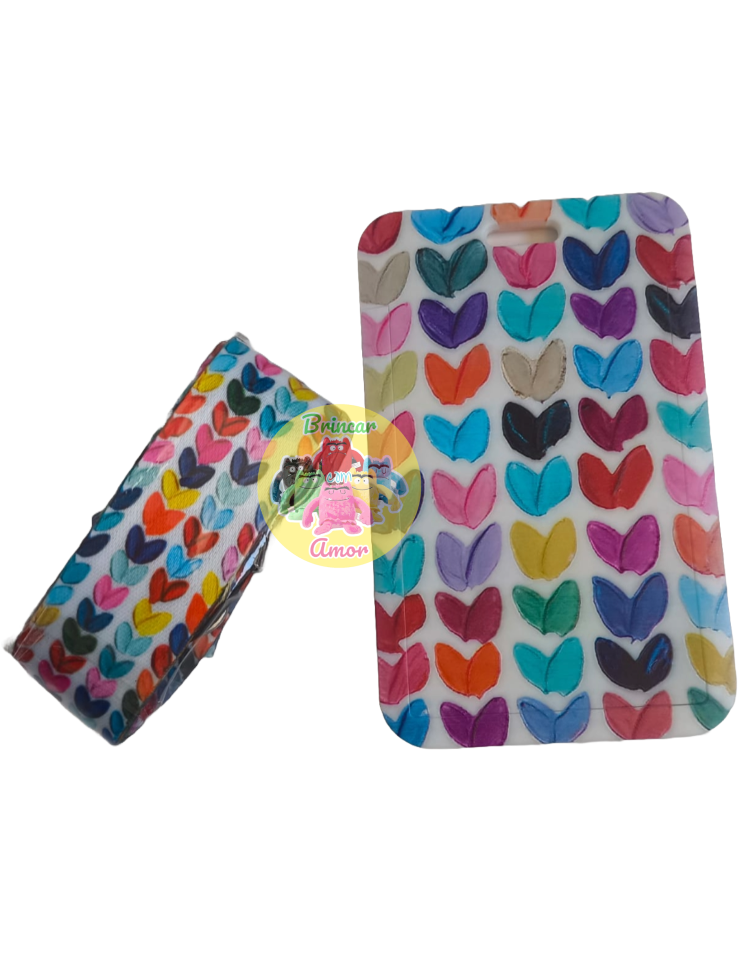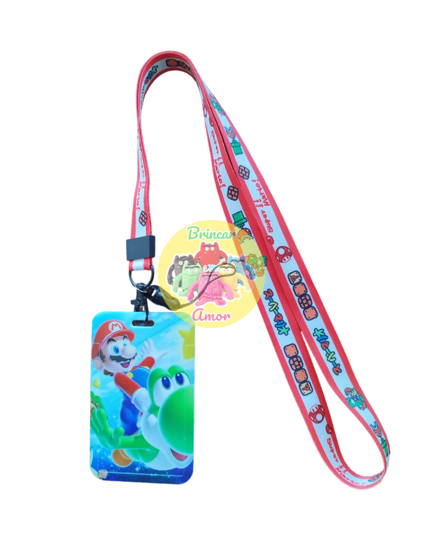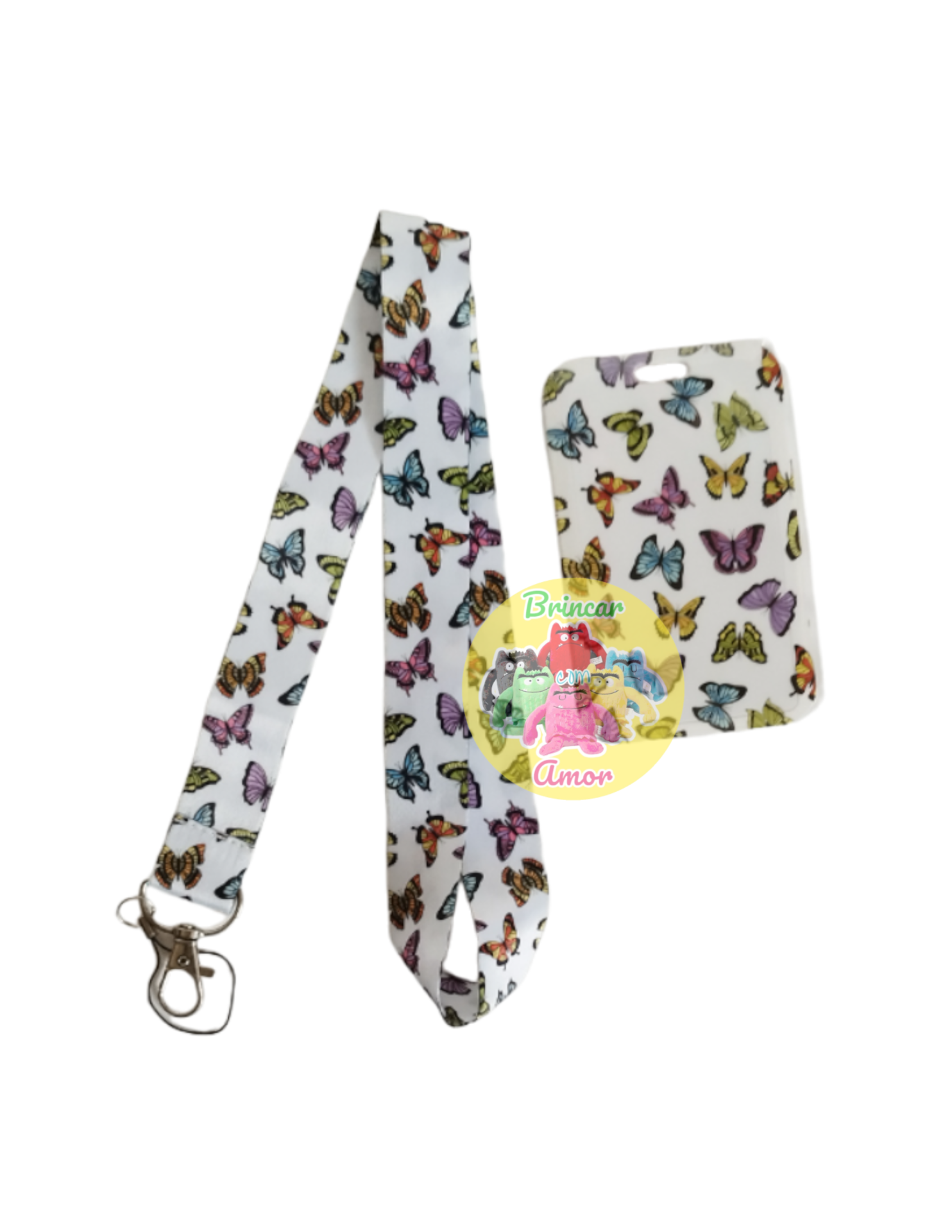 Características: Fita em tecido impresso; Inclui mosquetão e pendurante; Com janela para visualização do cartão.
