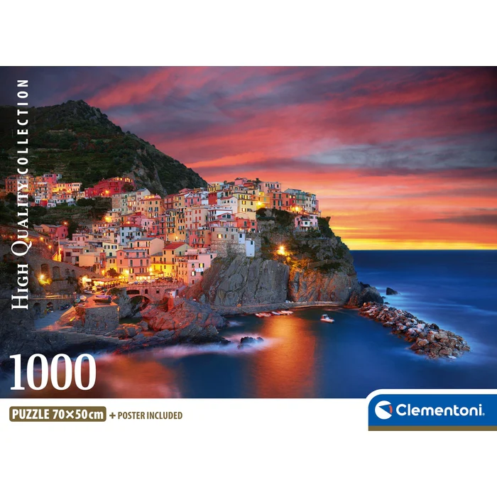 O Puzzle Manarola da Clementoni leva-te até à deslumbrante vila das Cinque Terre, onde casas coloridas repousam sobre falésias com vista para o mar azul-turquesa. Com 1000 peças de alta qualidade e uma imagem rica em detalhe, este puzzle oferece uma experiência relaxante, envolvente e perfeita para quem aprecia destinos pitorescos e desafios tranquilos.