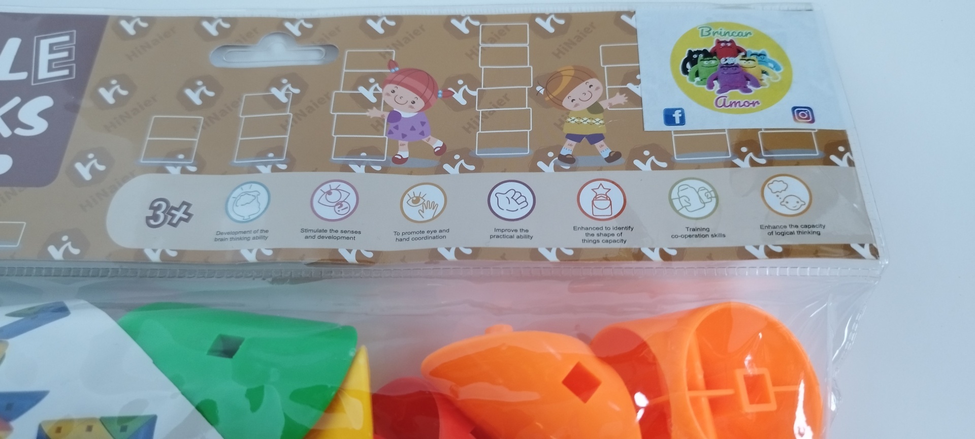 ✋ Motricidade fina e coordenação olho-mão: Manipular os blocos fortalece os músculos das mãos e melhora o controlo dos movimentos.