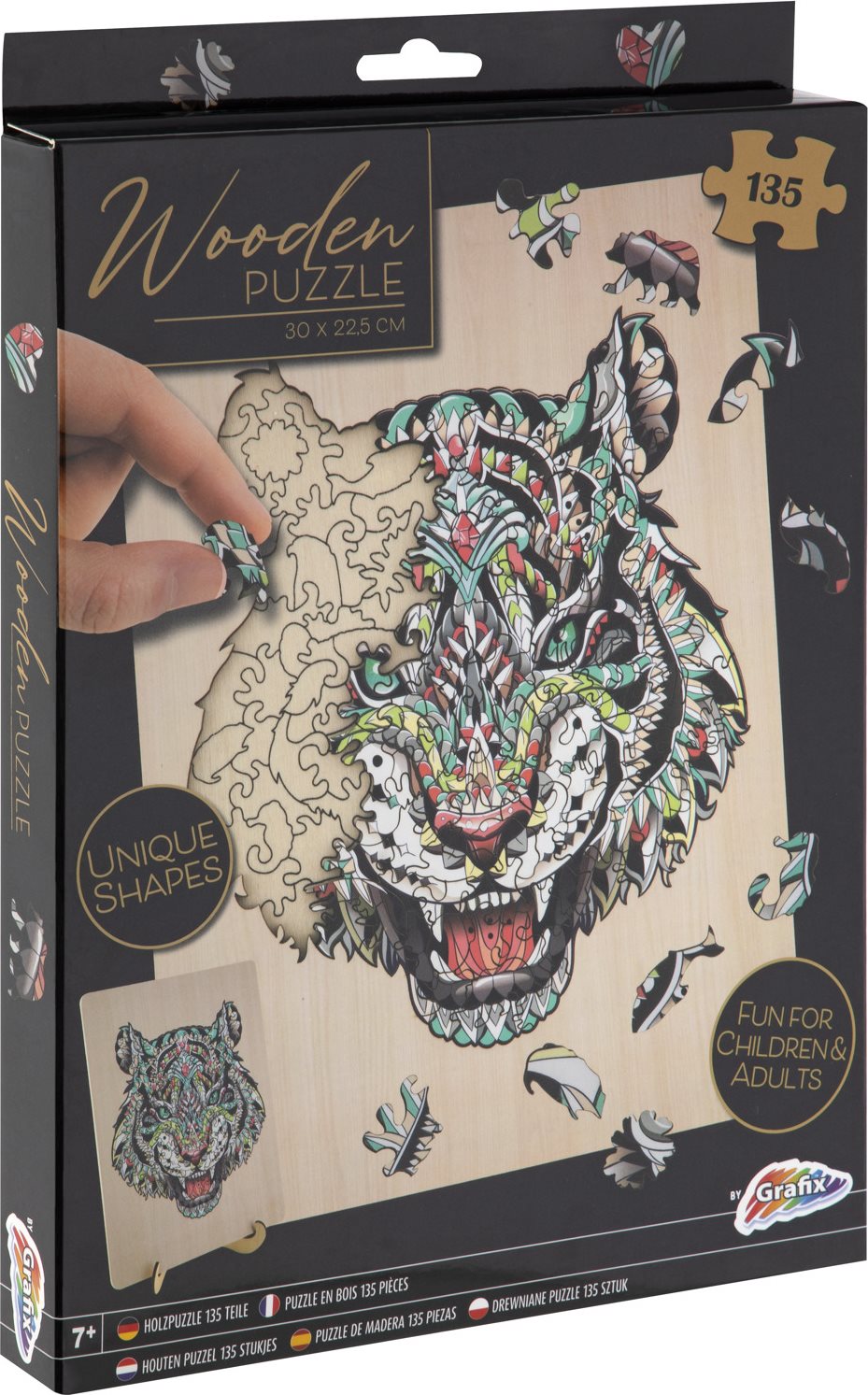 UNIQUE SHAPES - PUZZLE EM MADEIRA TIGRE 135 PEÇAS, GRAFIX