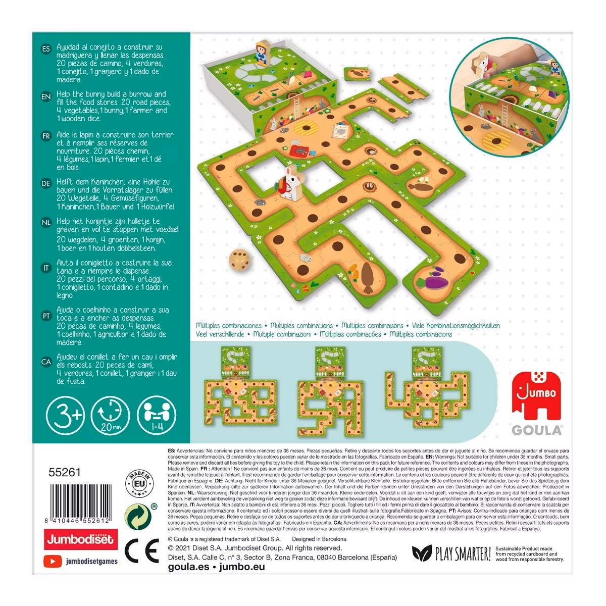 ✅ Inclui: 20 peças de caminho, 4 legumes, 1 coelhinho, 1 agricultor e 1 dado.