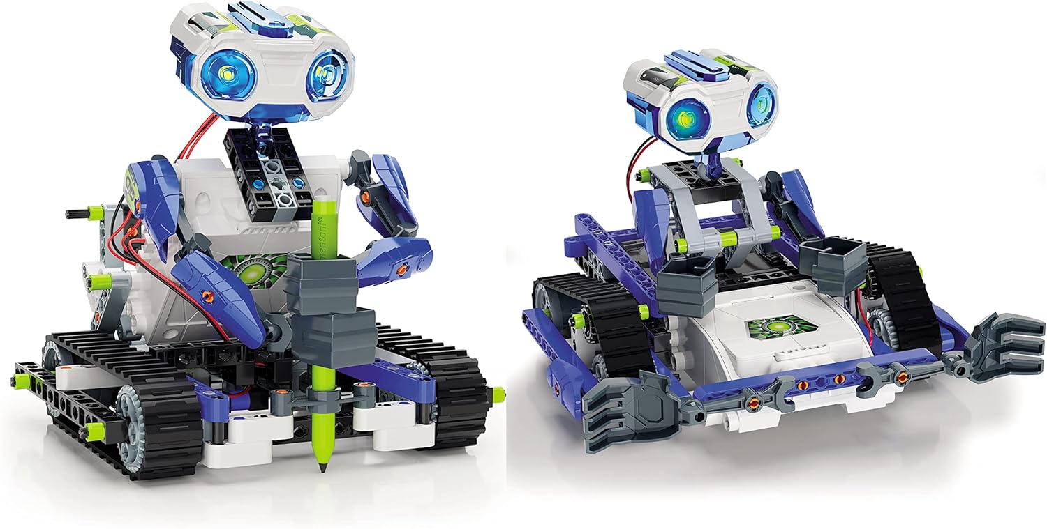 Entra no mundo da robótica e programação com o Robomaker Start, um laboratório interativo que segue a ideologia STEM e utiliza tecnologia Bluetooth para experiências de aprendizagem ainda mais envolventes! Com mais de 200 componentes, incluindo 2 motores, um altifalante e um sensor de infravermelhos, as crianças podem construir e programar 3 robôs incríveis que realizam atividades dinâmicas e educativas.