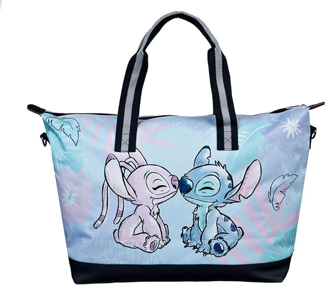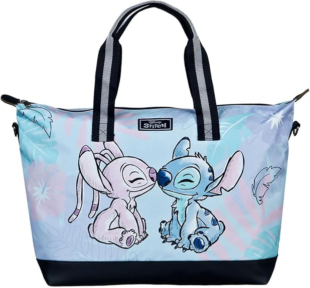 Os sacos de alças multiusos são aliados imprescindíveis para quem valoriza praticidade com estilo. O Saco de Alças Stitch e Angel destaca-se pelo seu design encantador e versatilidade, sendo o companheiro ideal para férias, idas à cidade ou dias de praia em família. Com alças confortáveis e uma alça de ombro removível e ajustável, adapta-se facilmente às suas necessidades de transporte. O compartimento principal espaçoso e o bolso interior com fecho permitem guardar todos os essenciais com segurança e fácil acesso.