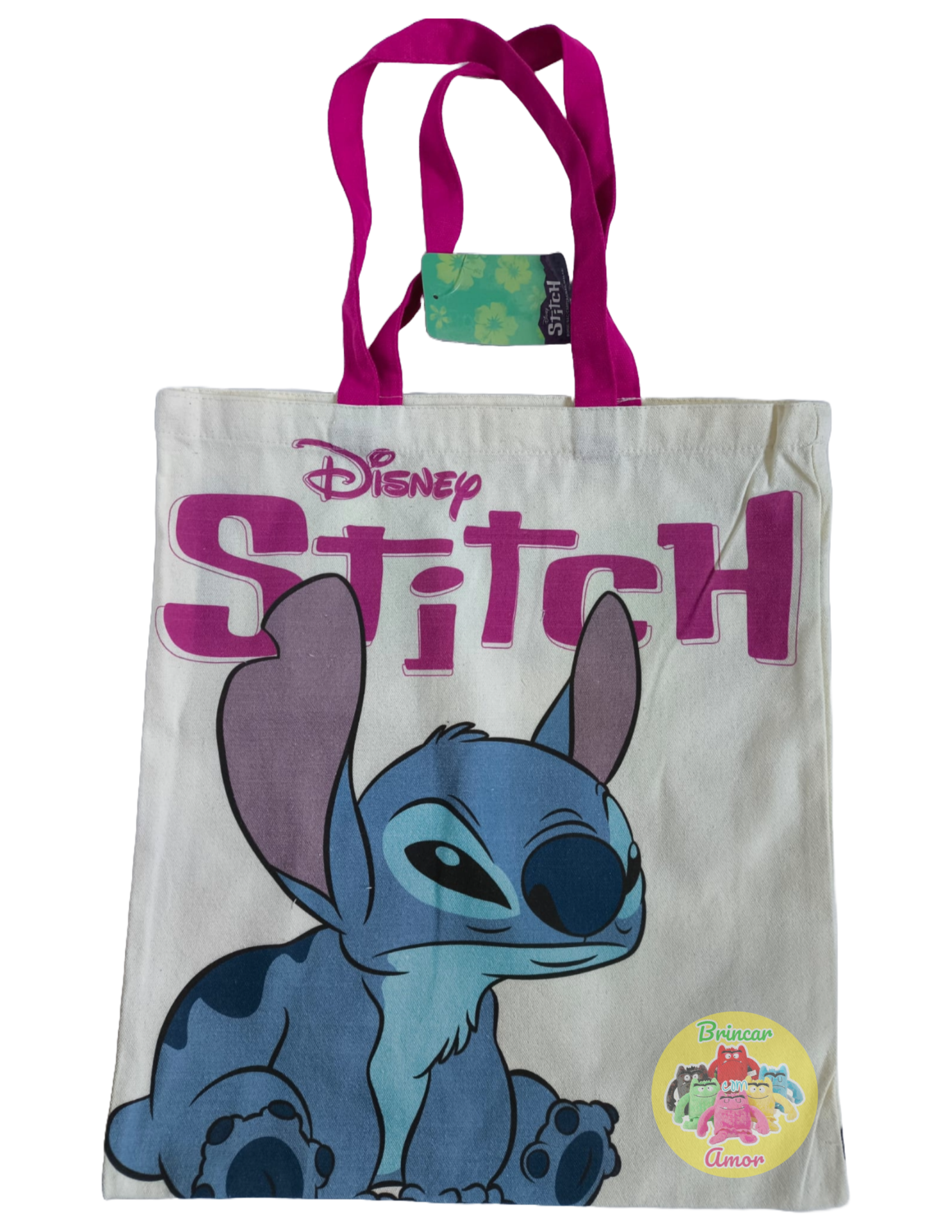 SACO DE PANO COM ALÇAS 38X42CM STITCH ROSA