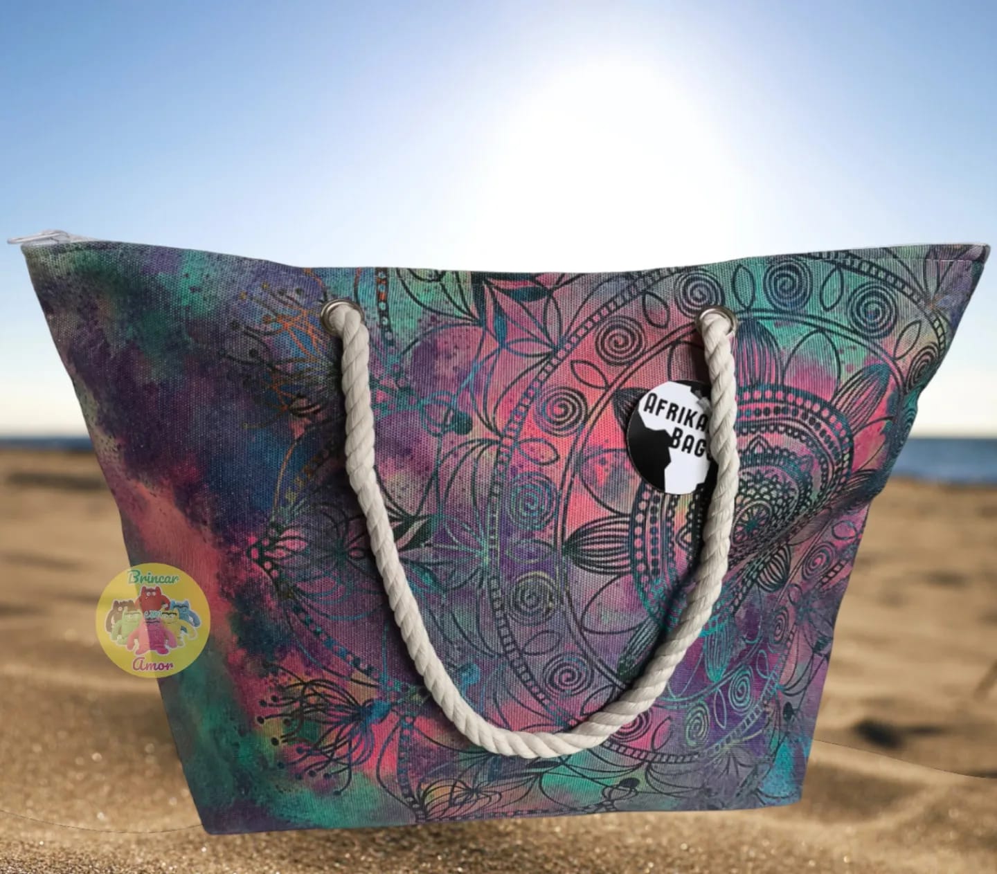 Os sacos de praia com alças são aliados imprescindíveis para mães organizadas. Espaçosos e versáteis, permitem transportar com facilidade todos os itens essenciais para um dia de atividades ao ar livre com os filhos. Com um fecho em todo o seu comprimento e design elegante, facilita a organização e torna a logística da família na praia ou no campo muito mais simples e eficiente. Contém pequena bolsa interior, para guardar pequenos objetos.