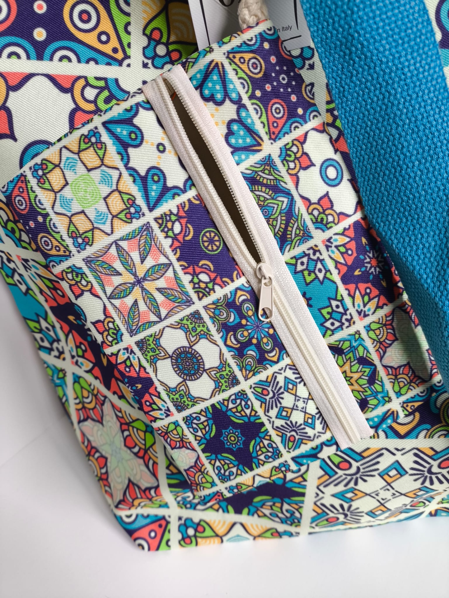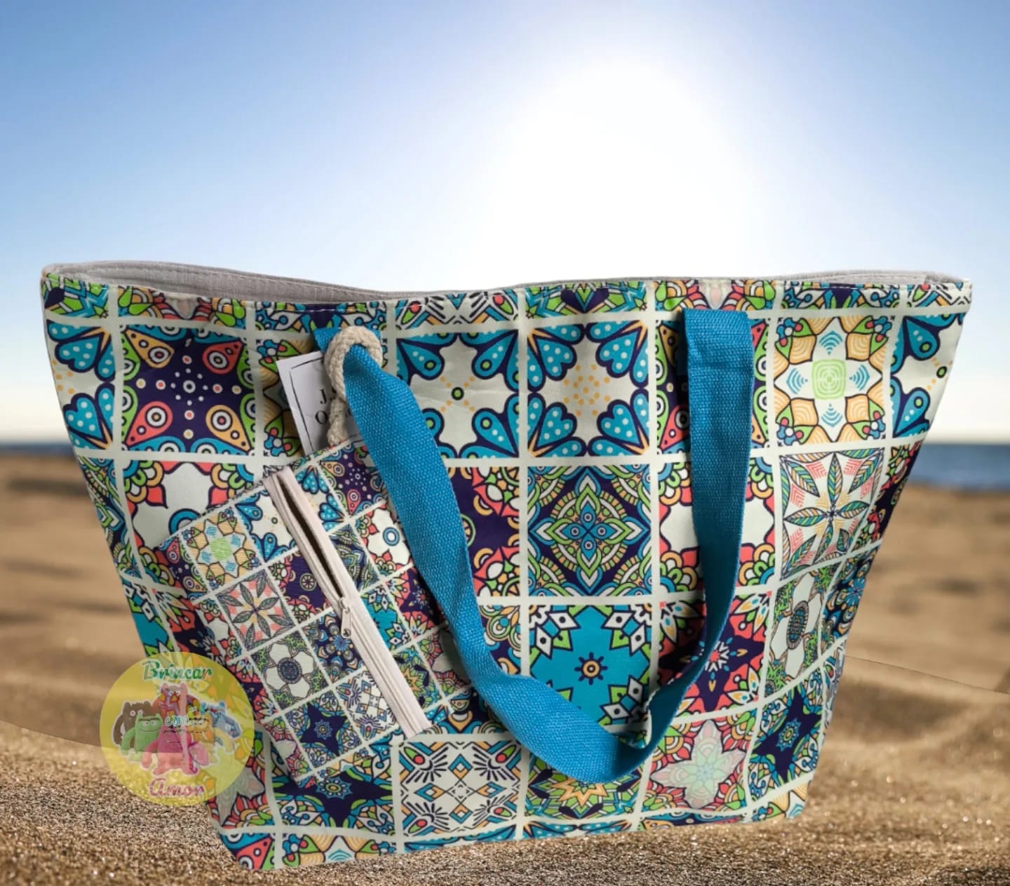 Os sacos de praia com alças são aliados imprescindíveis para mães organizadas. Espaçosos e versáteis, permitem transportar com facilidade todos os itens essenciais para um dia de atividades ao ar livre com os filhos. Com um fecho em todo o seu comprimento e design elegante, facilita a organização e torna a logística da família na praia ou no campo muito mais simples e eficiente. Contém pequena bolsa exterior em separado, para guardar pequenos objetos.