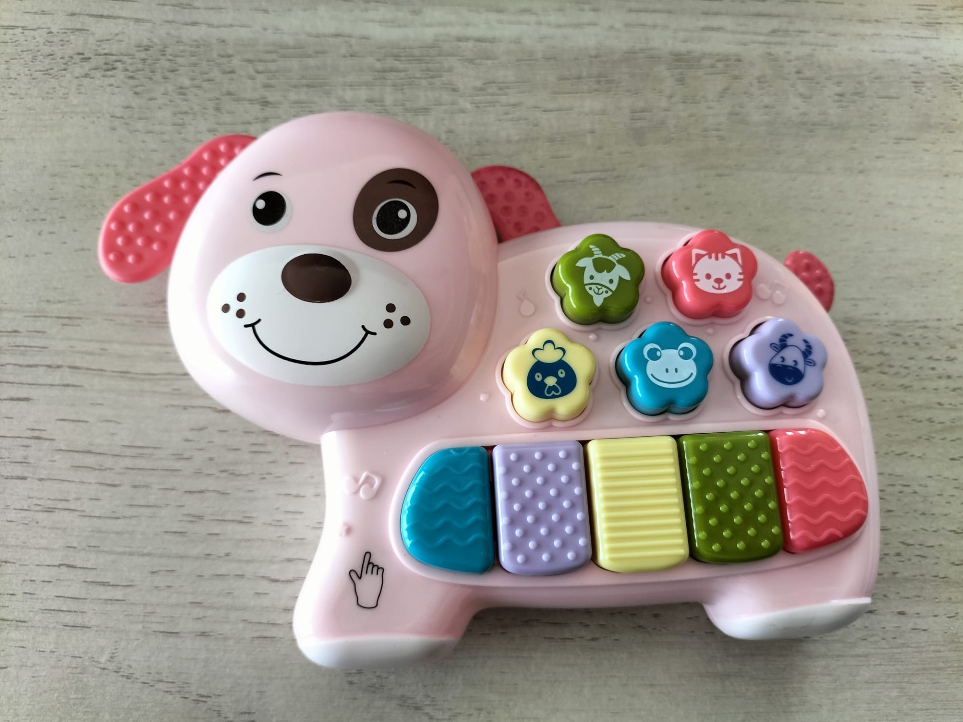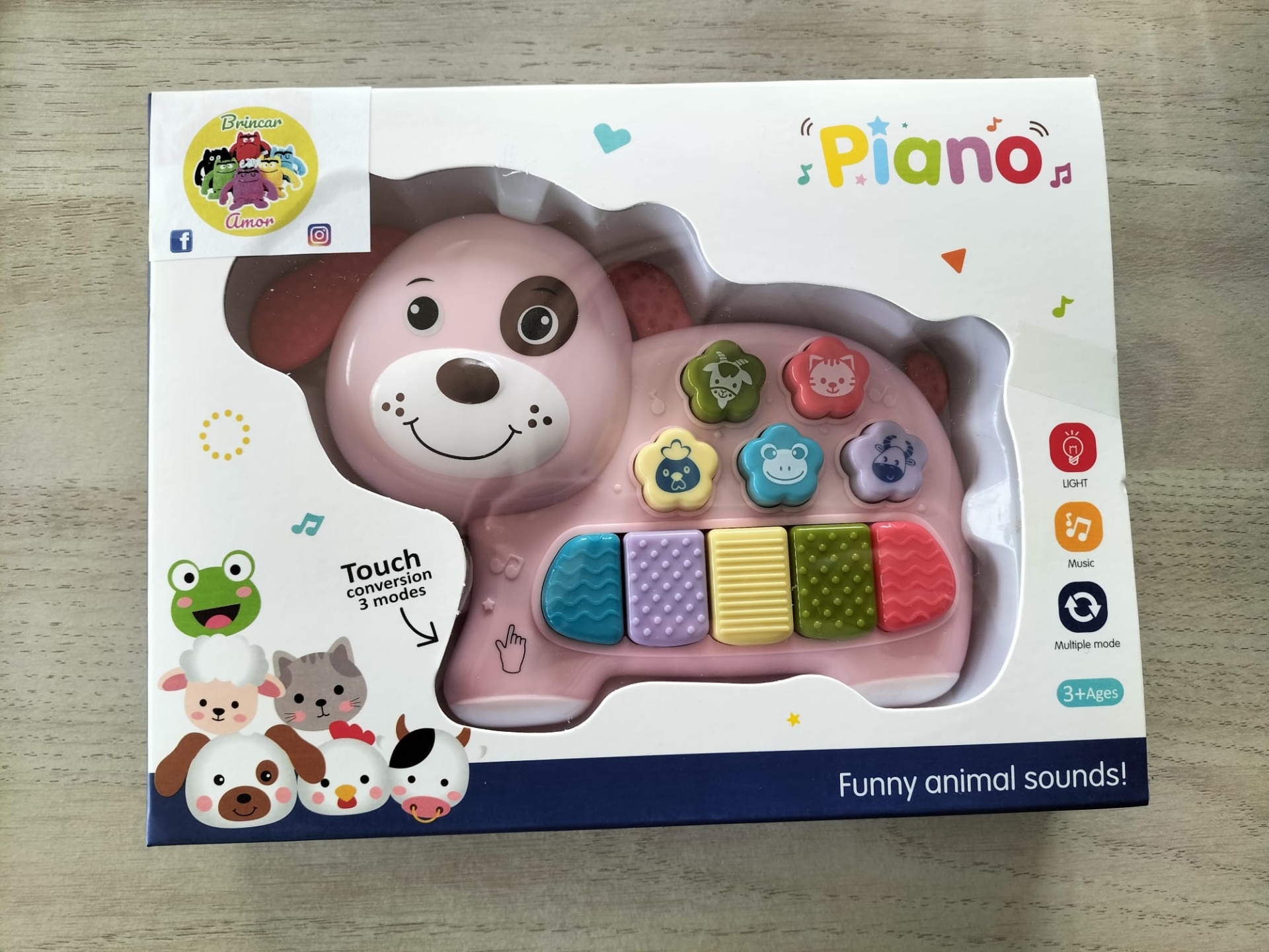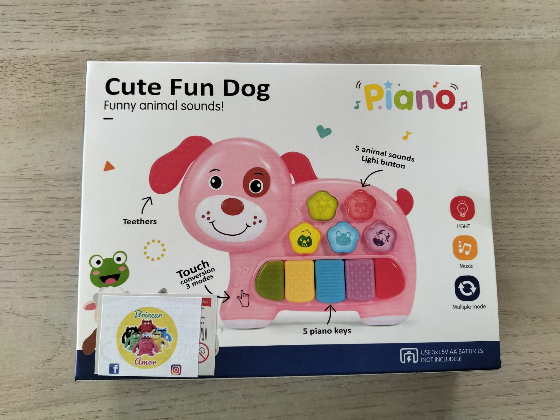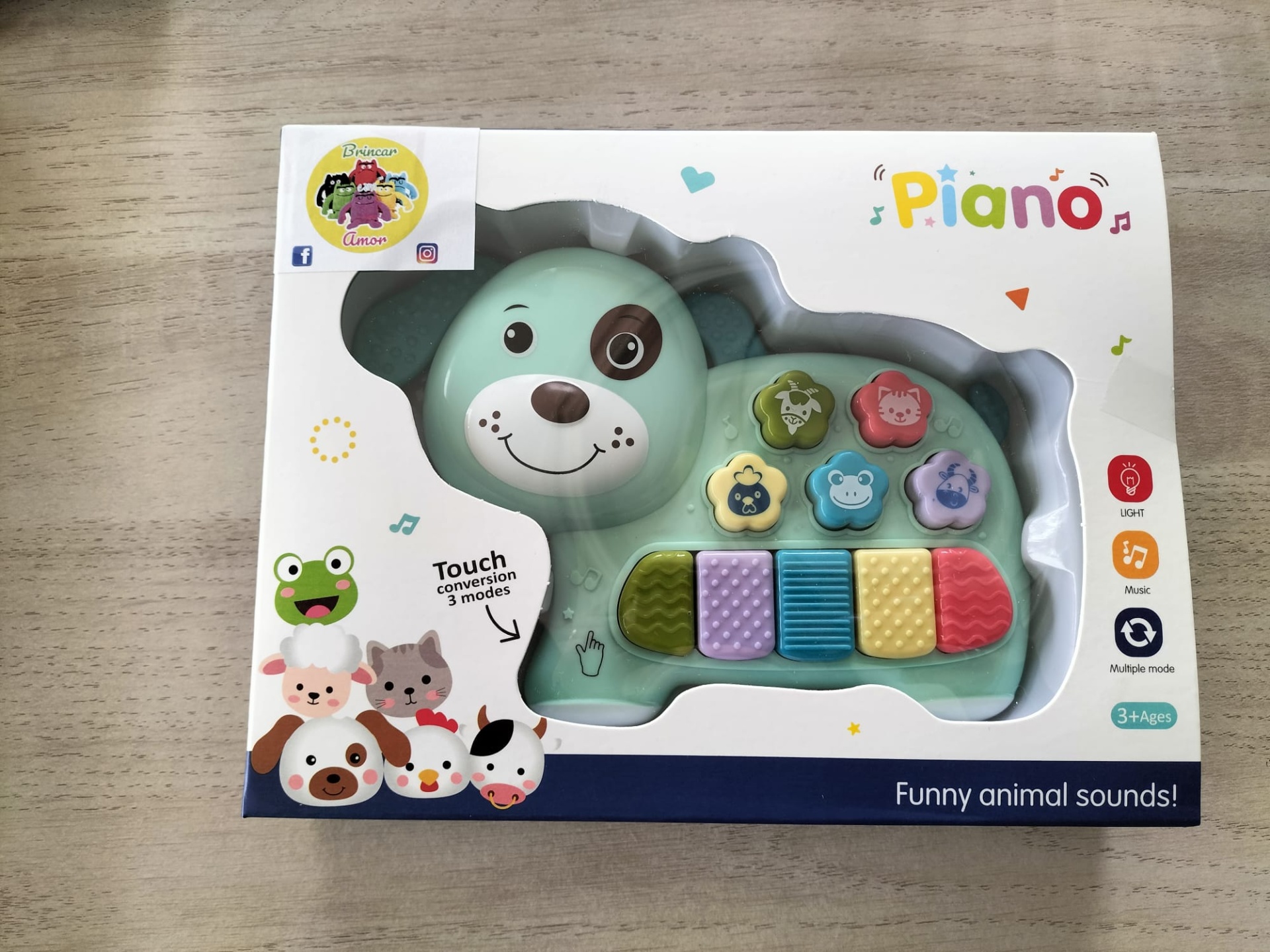 Características do Produto: ✅ Teclado com luzes, sons e botões interativos. ✅ Sons de 5 animais diferentes. ✅ Orelhas em forma de mordedor. ✅ Funciona com 3 pilhas AA (não incluídas). ✅ Dimensões adaptadas para mãos pequenas.