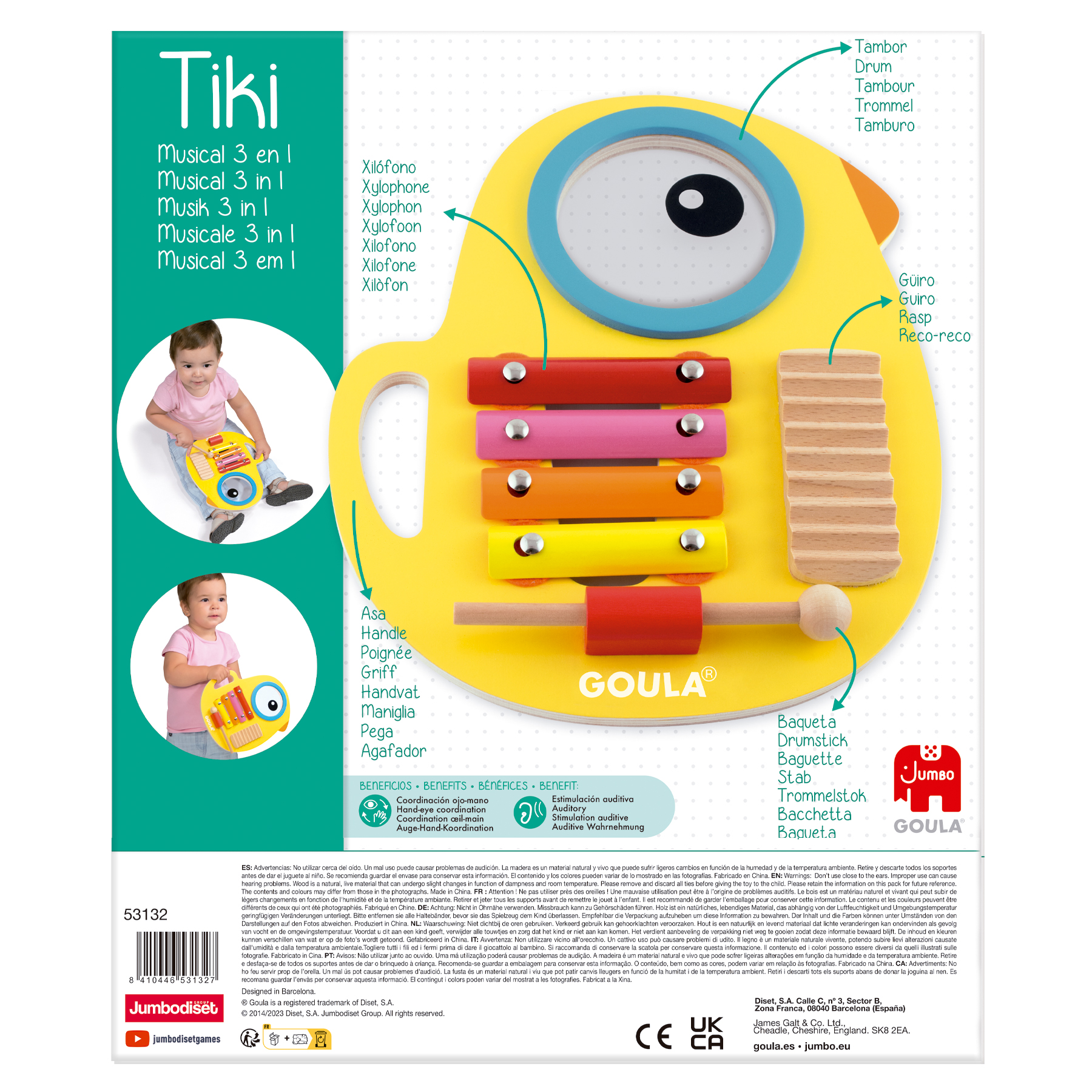 A dificuldade em estimular a audição e o ritmo nos primeiros anos pode limitar o interesse musical natural da criança. O Tiki Musical 3 em 1 da Goula oferece uma experiência sensorial completa, combinando tambor, xilofone e reco-reco num único brinquedo de madeira. Uma forma divertida de desenvolver ritmo, coordenação e curiosidade musical desde cedo.