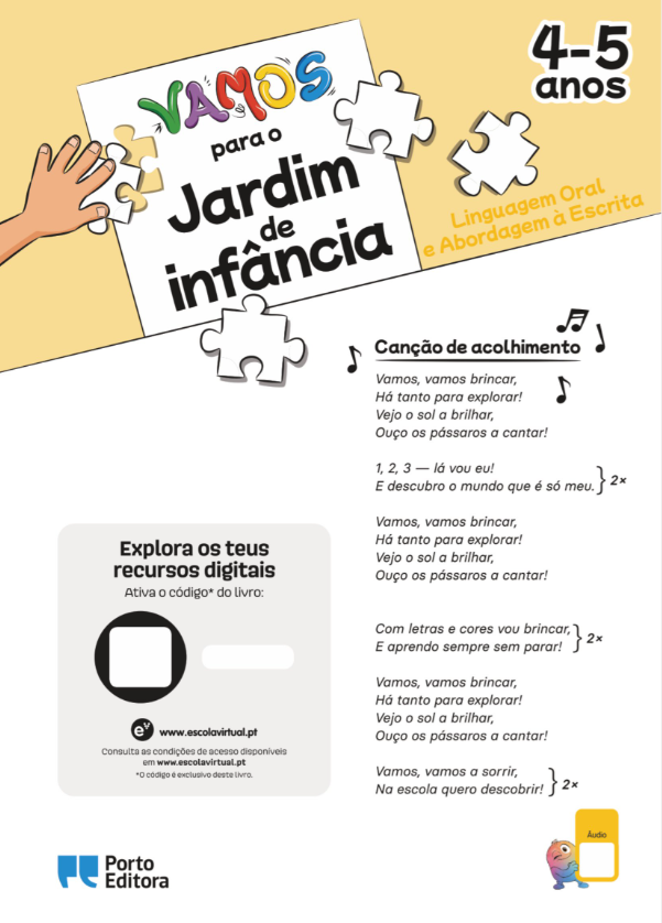 O livro VAMOS para o jardim de infância foi desenvolvido para despertar nas crianças dos 5 aos 6 anos o prazer de comunicar e descobrir o mundo através da linguagem. Inspirado nas Orientações Curriculares para a Educação Pré-Escolar, promove atividades lúdicas e significativas que incentivam a expressão oral, o contacto inicial com a escrita e uma compreensão global das aprendizagens, preparando de forma natural e motivadora a transição para o 1.º ciclo.