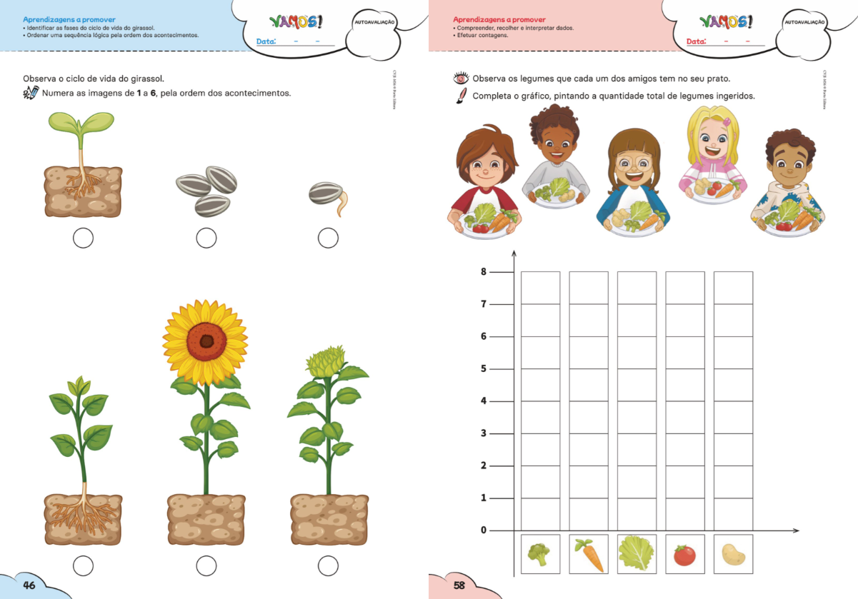 As personagens Vítor, Ágata, Mia, Óliver, Sara (VAMOS!) e o simpático Obi, já bem conhecidas pelos alunos do 1.º ciclo do ensino básico, acompanham agora os mais pequenos nesta nova etapa, tornando a aprendizagem mais cativante e preparando-os com entusiamo para a etapa escolar seguinte.