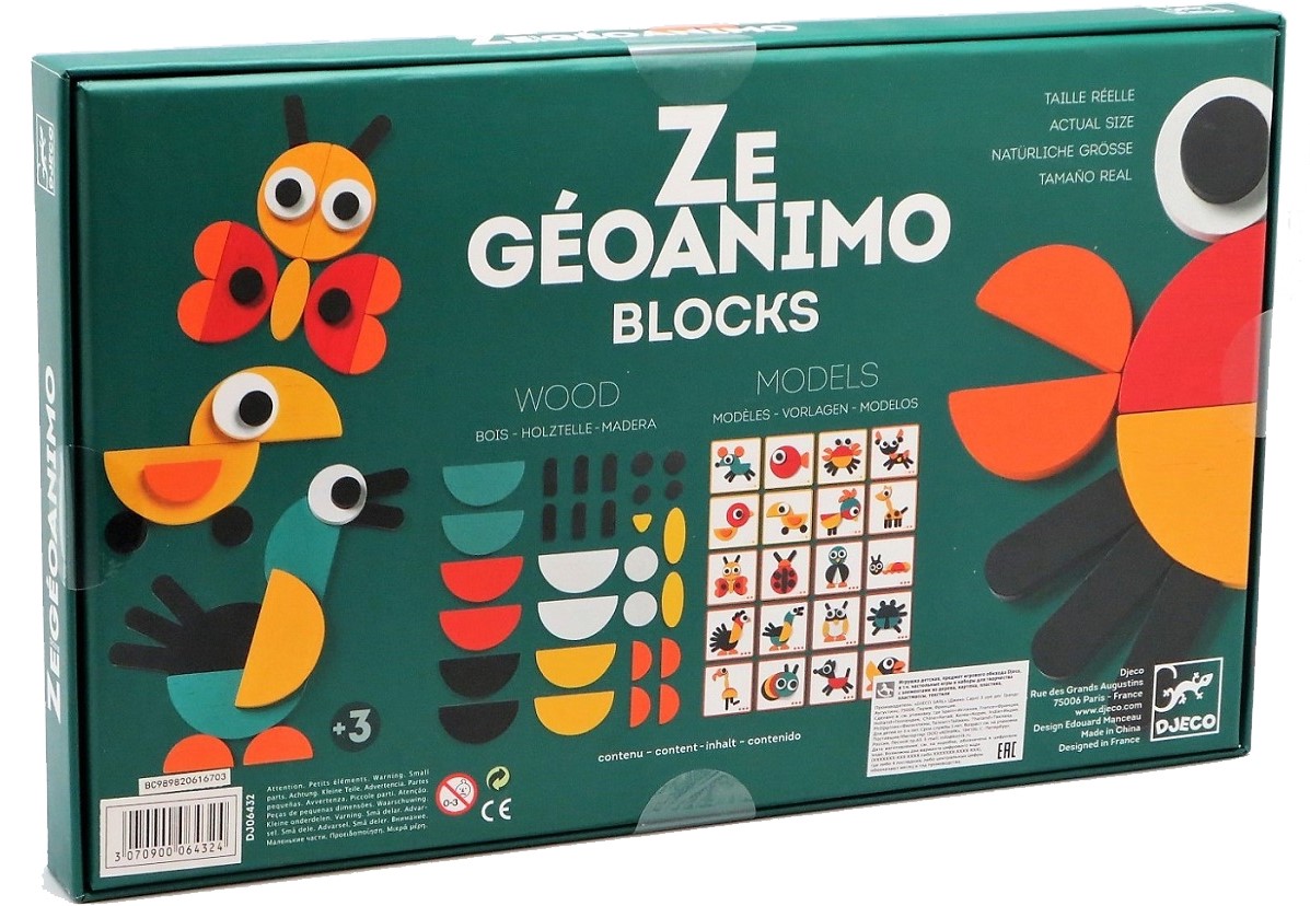 ZE GÉOANIMO BLOCKS - REPRODUZ ANIMAIS COM PEÇAS DE MADEIRA, DJECO